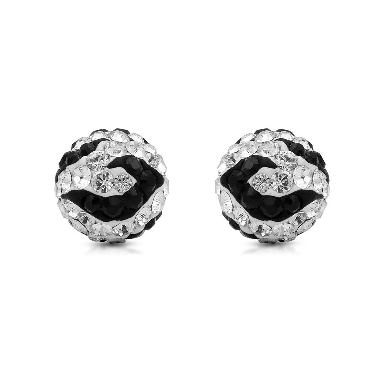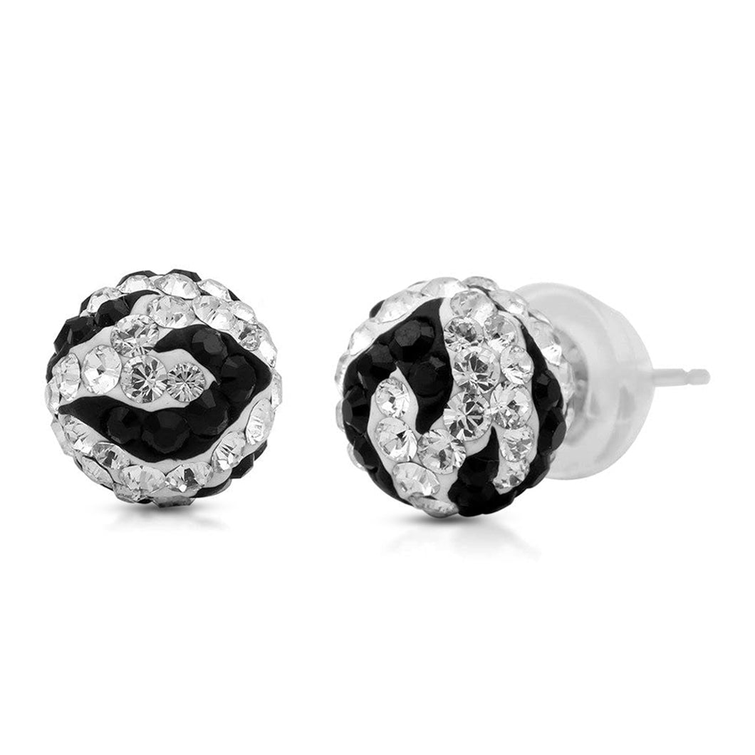 Details: Jewelili 10K White Gold With White & Black Cubic Zirconia Crystal Stud Earrings