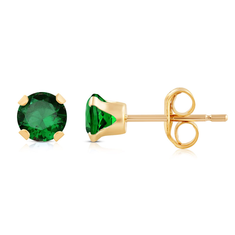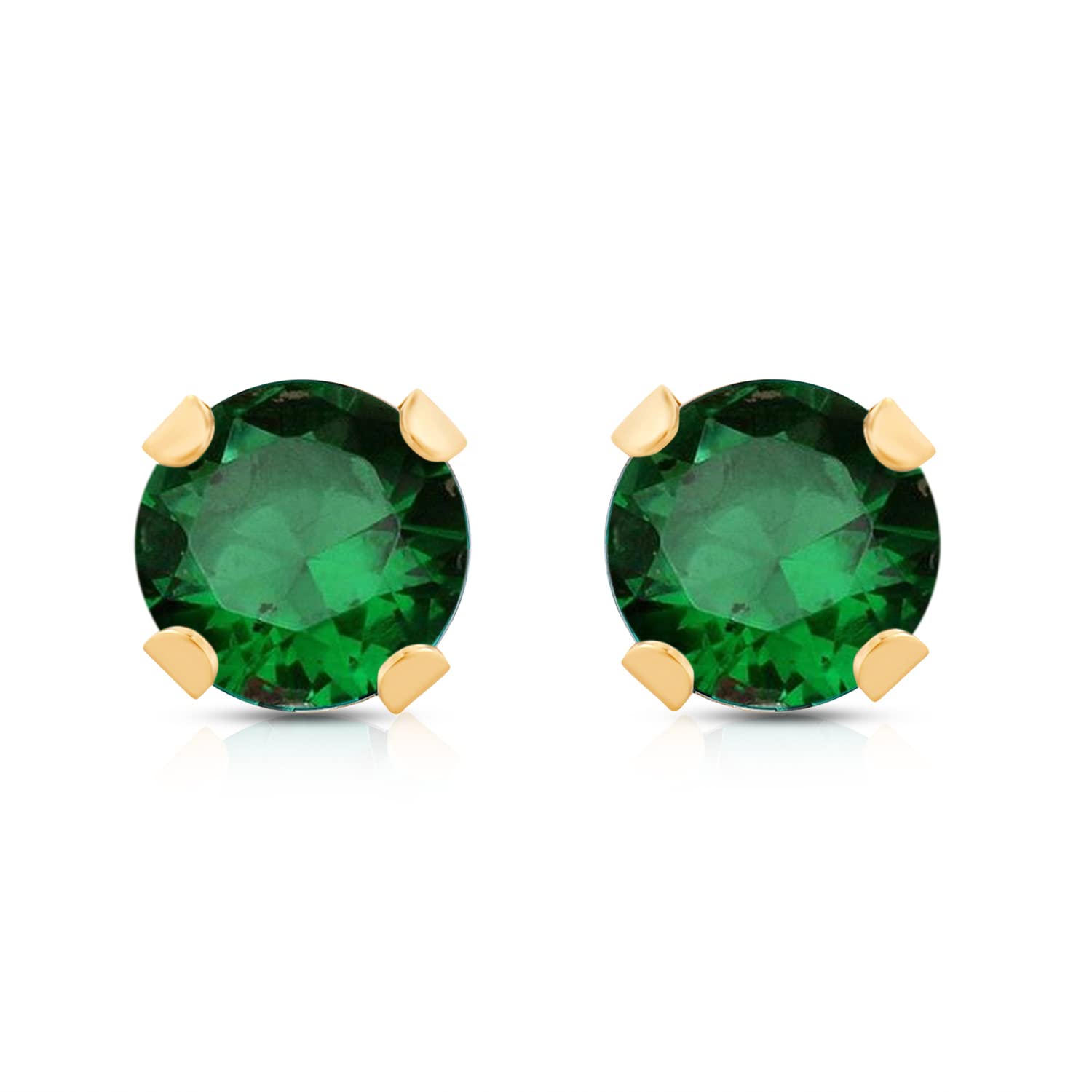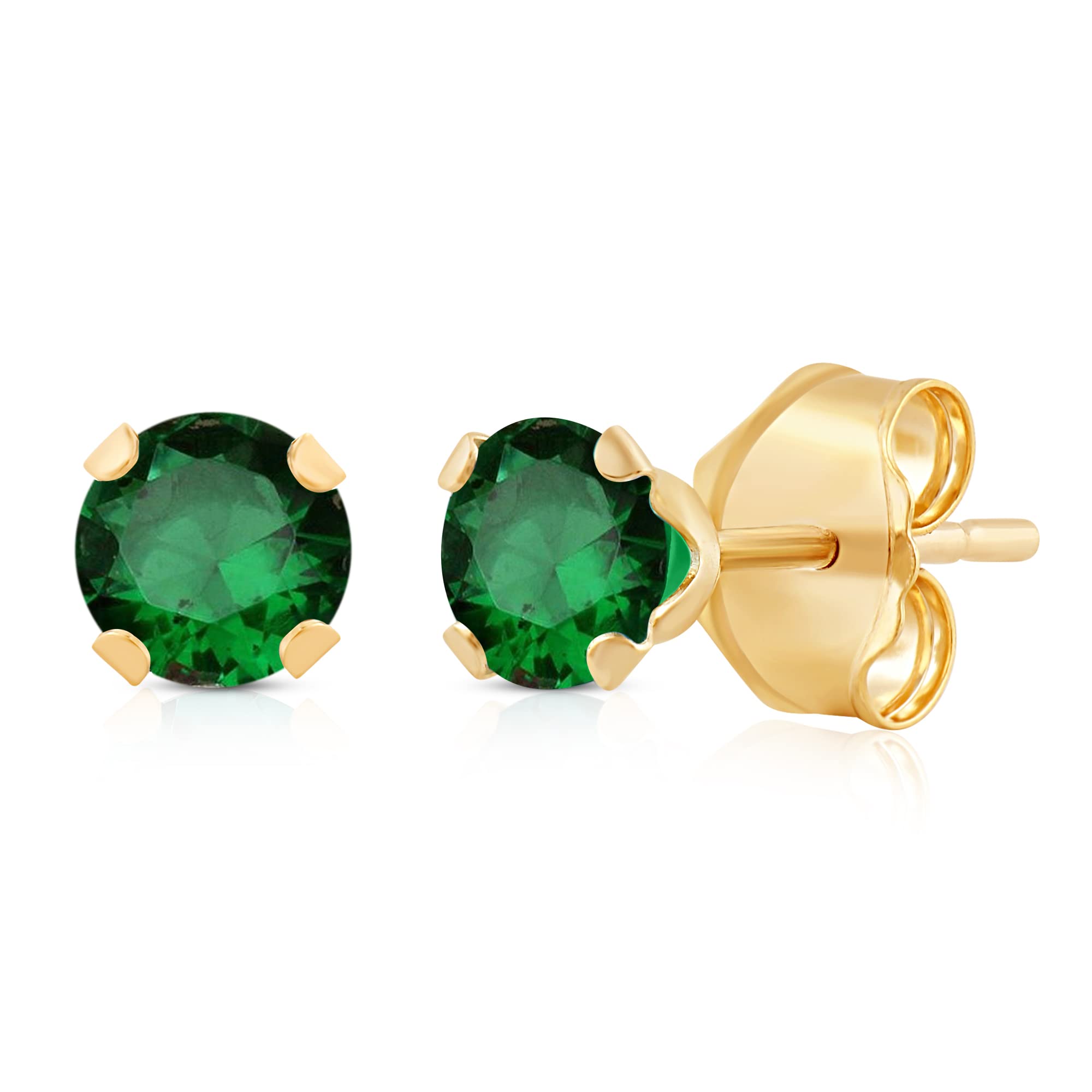 • 10K Yellow Gold With Round Cut Created Emerald Stud Earrings