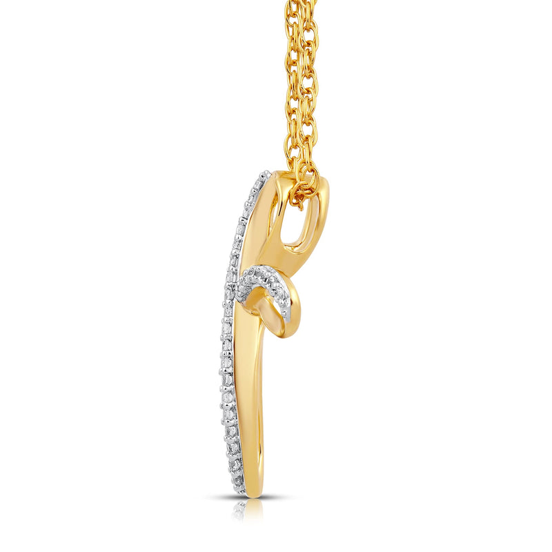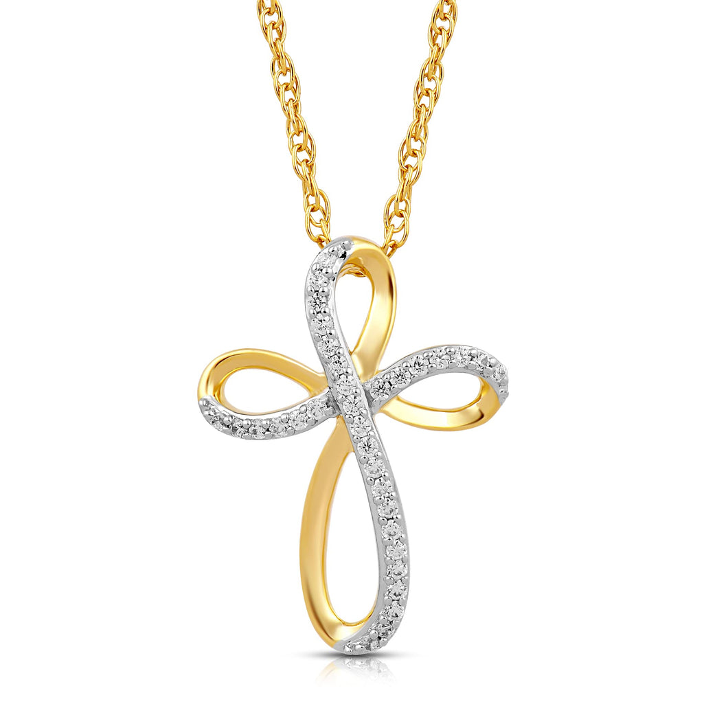 Jewelili 10K Yellow Gold With 1/10 CTTW Natural White Round Diamonds Cross Pendant Necklace