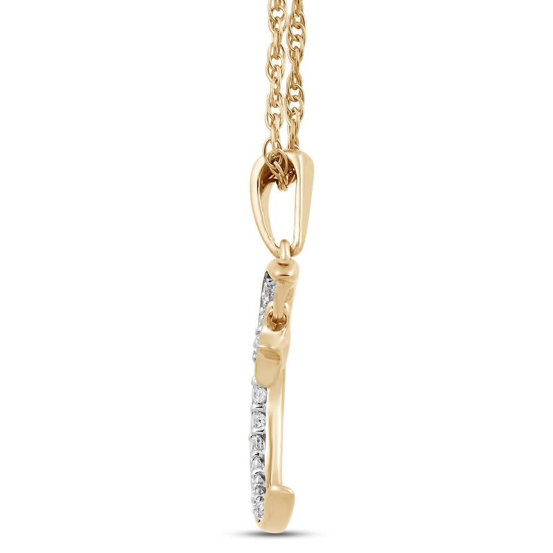 Jewelili 10K Yellow Gold With 1/10 CTTW Natural White Round Diamonds Moon Star Pendant Necklace