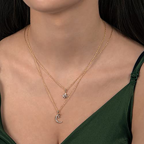Jewelili 10K Yellow Gold With 1/10 CTTW Natural White Round Diamonds Pendant Necklace