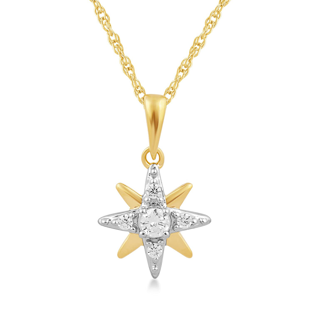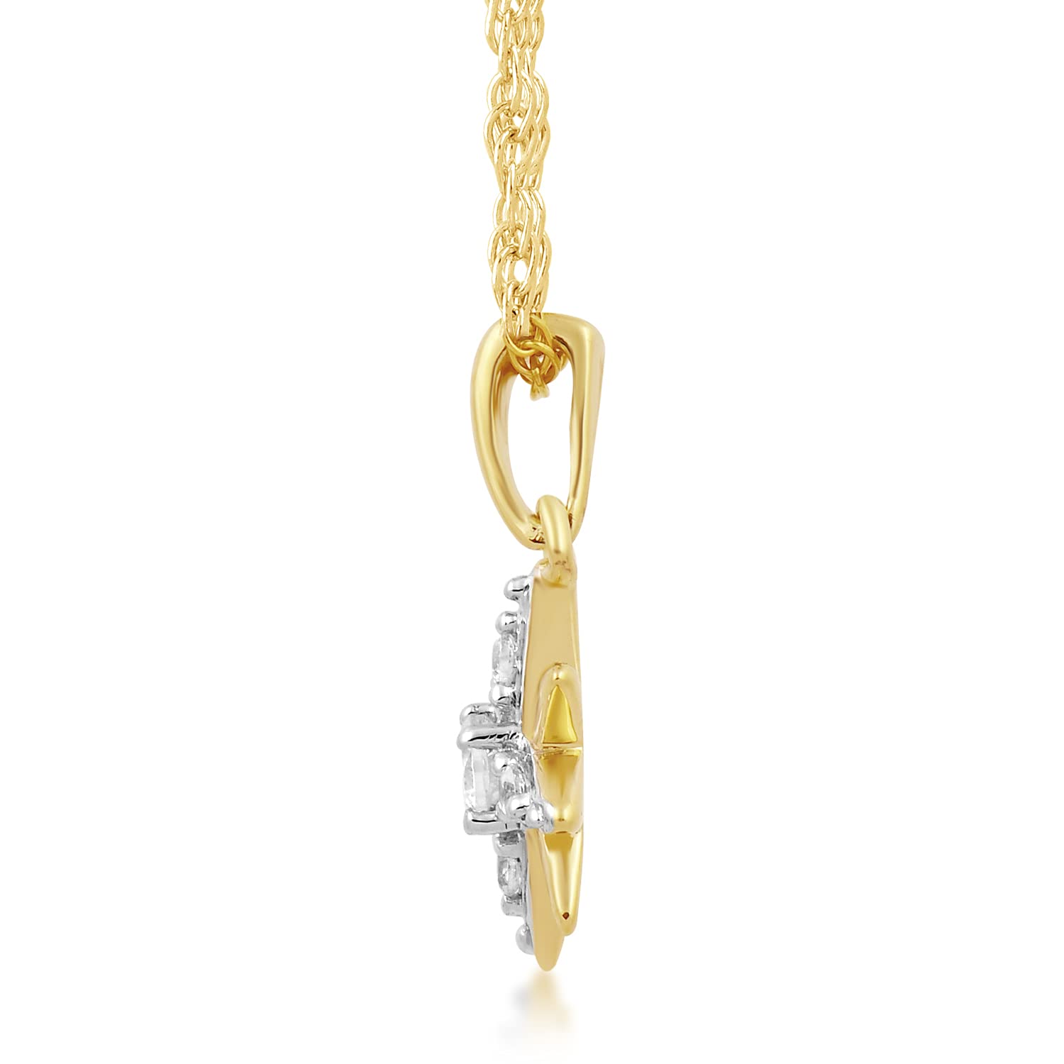 • Pendant Necklace in 10K Yellow Gold with 1/10 Cttw Natural White Round Diamond, 18" Rope Chain