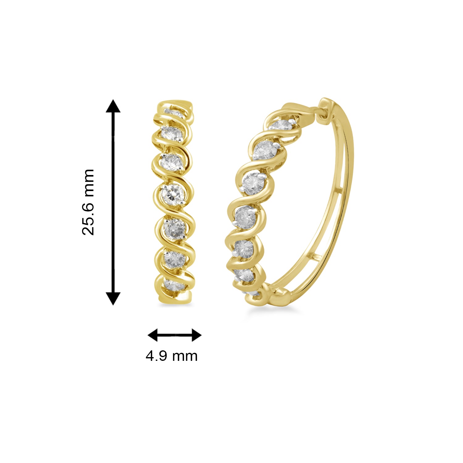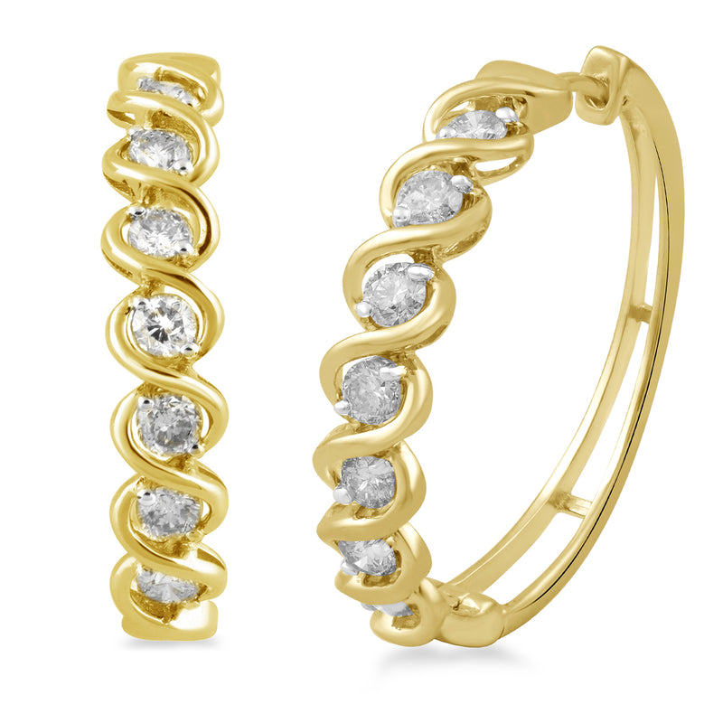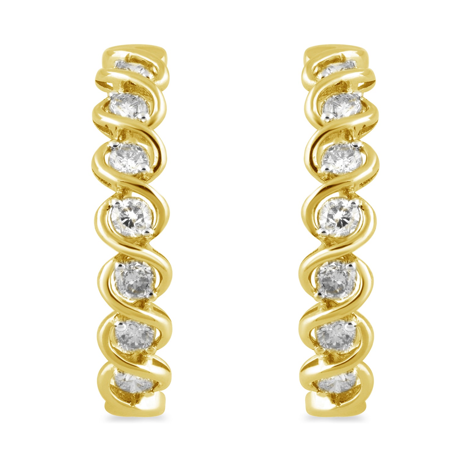 • Hoop Earrings in 10K Yellow gold with 1 Cttw natural white diamond
