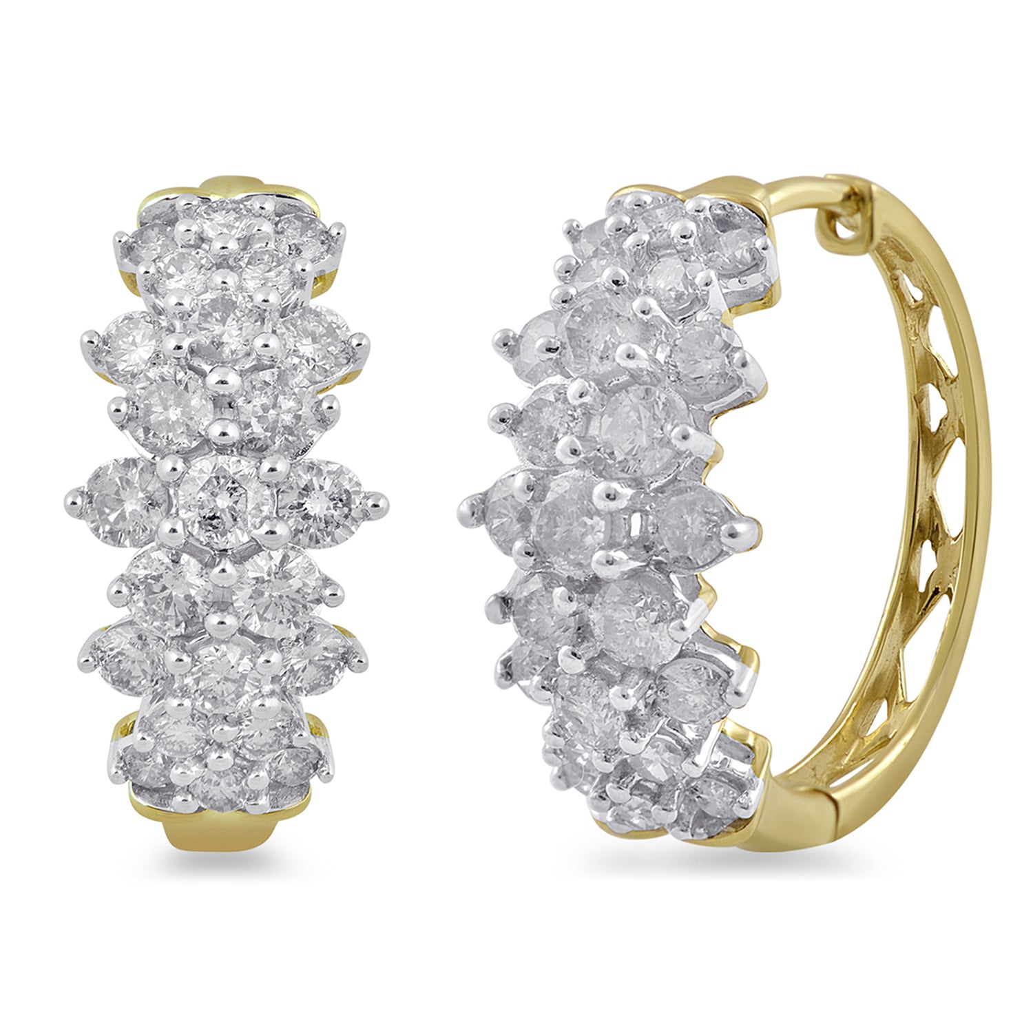 Jewelili 10K Yellow Gold 2 CTTW Natural White Round Diamonds Huggies Earrings
