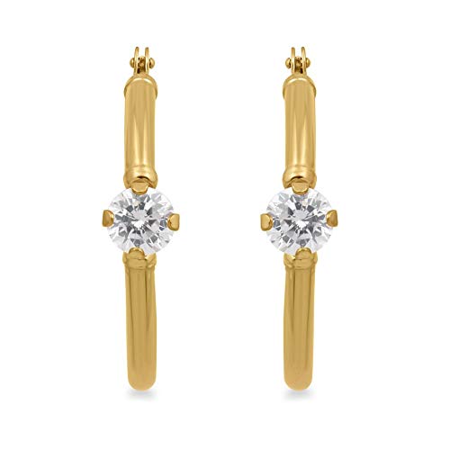Jewelili 10K Yellow Gold Round Cubic Zirconia Hoop Earrings