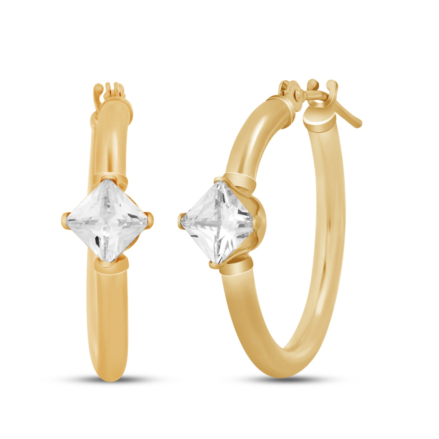 Jewelili 10K Yellow Gold Square Shape White Cubic Zirconia Hoop Earrings