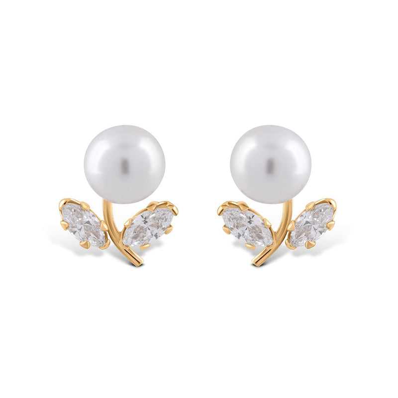 • 10K Yellow Gold With Pearl and Cubic Zirconia Stud Earrings