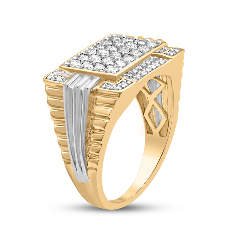 • Load image into Gallery viewer, Jewelili Men's Ring with Natural White Round Diamonds in 10K Yellow Gold and White Gold 1.0 CTTW View 3