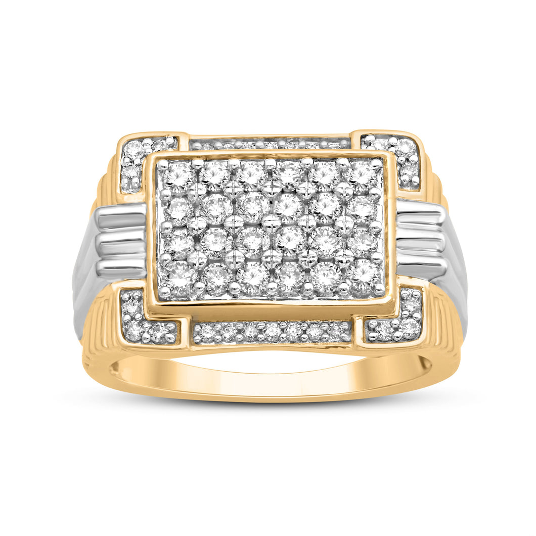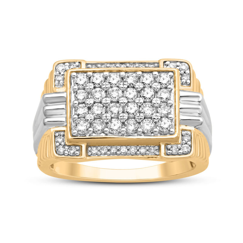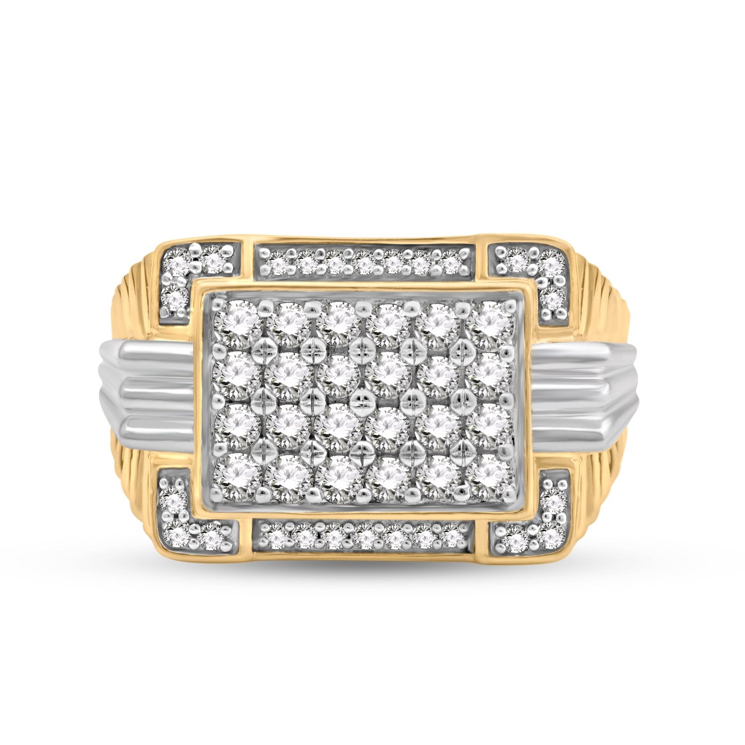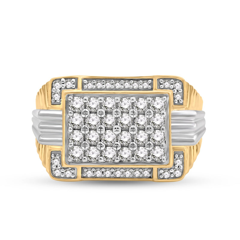 • Load image into Gallery viewer, Jewelili Men's Ring with Natural White Round Diamonds in 10K Yellow Gold and White Gold 1.0 CTTW View 1