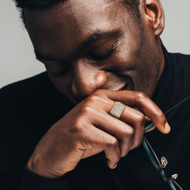 • Load image into Gallery viewer, Jewelili Men's Ring with Natural White Round Diamonds in 10K Yellow Gold and White Gold 1.0 CTTW View 6