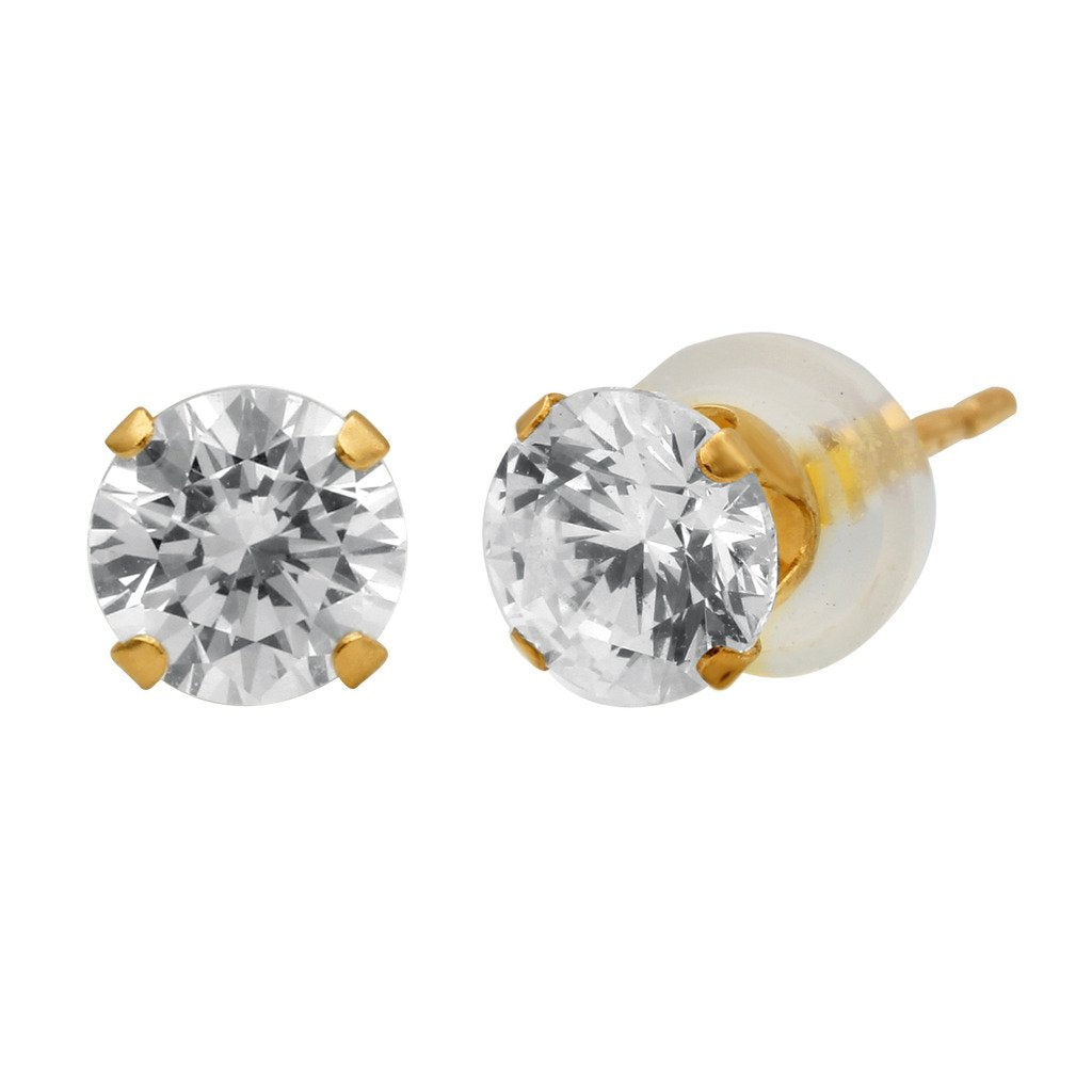 Details: 10K Yellow Gold Cubic Zirconia 4.5mm and 5mm Stud Earrings Box Set