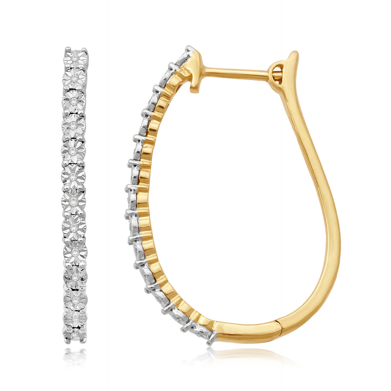 • 10K Yellow gold Natural white Round diamond accent hoop earrings