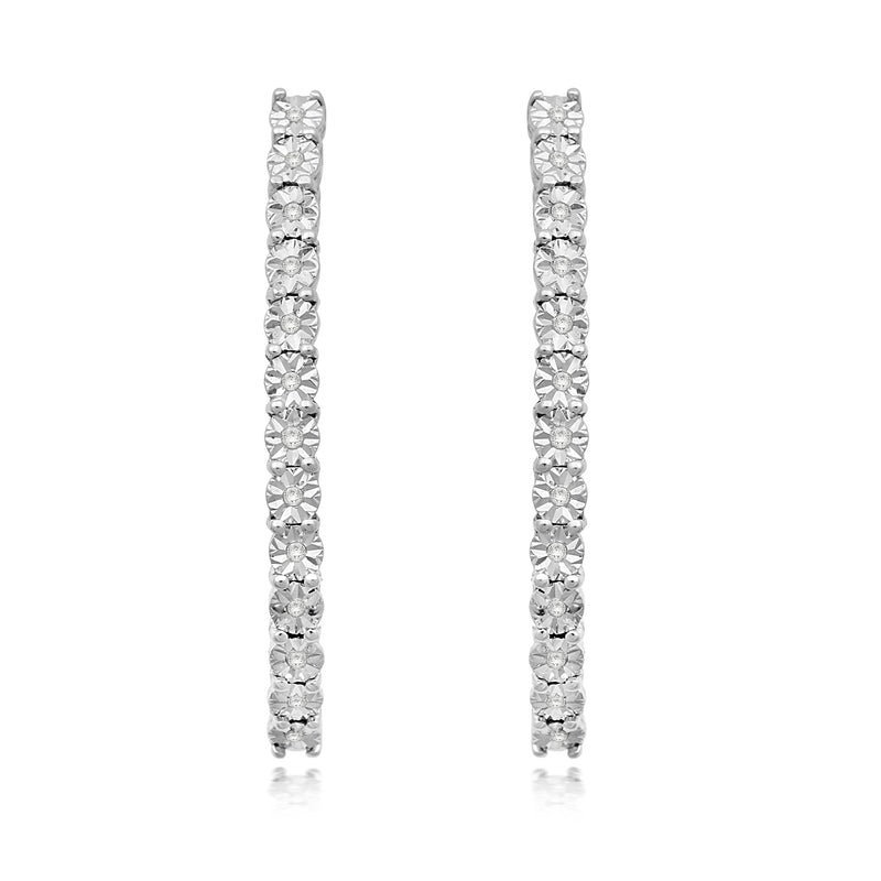 Jewelili 10K Yellow Gold With Natural White Round Diamonds Hoop Earrings