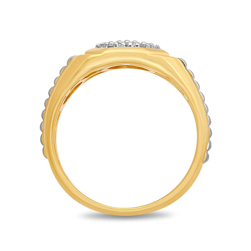 Jewelili 10K Yellow Gold Over Sterling Silver With 1/4 CTTW Round Natural White Diamonds Men's Ring