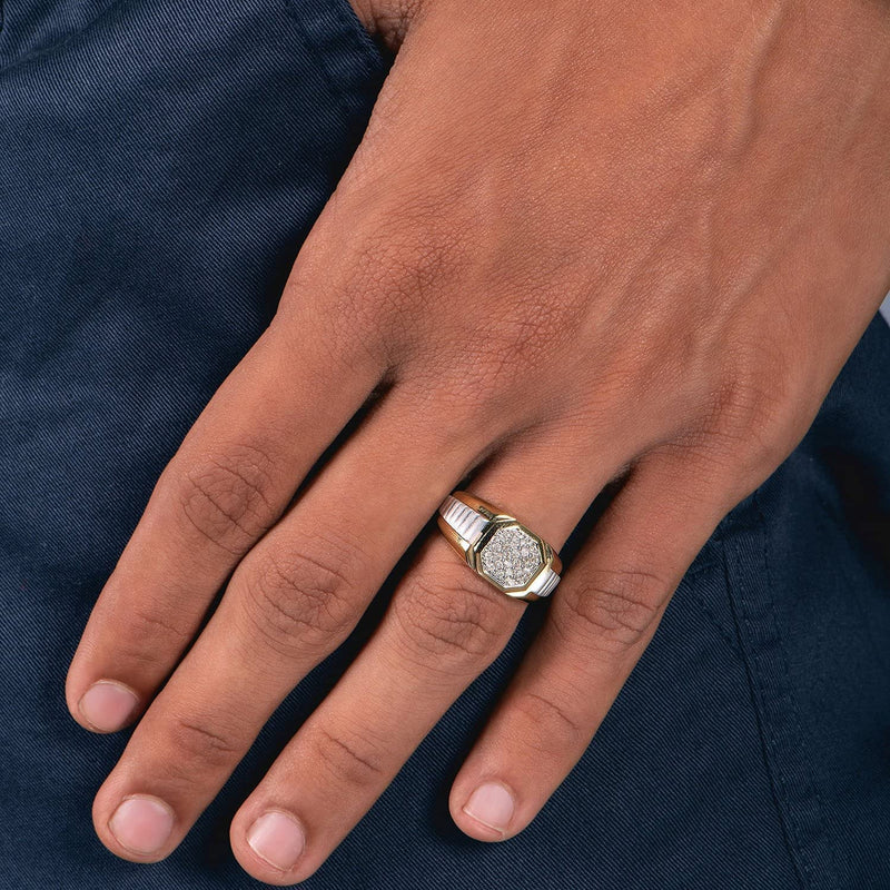 • 10K Yellow Gold Over Sterling Silver With 1/4 Cttw Round Natural White Diamonds Men's Ring