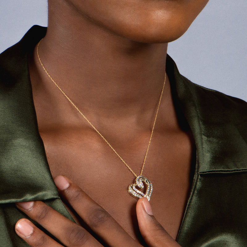 • Load and play video in Gallery viewer, Jewelili 10K Yellow Gold with 1.0 CTTW Natural White Round Diamonds Heart Pendant Necklace