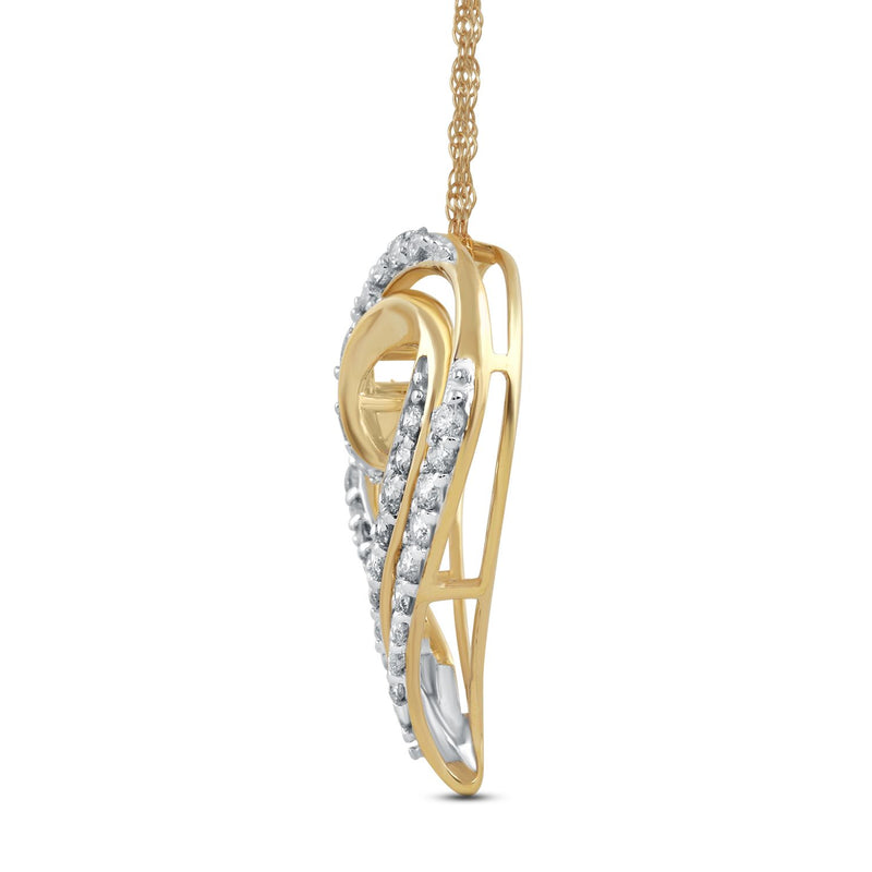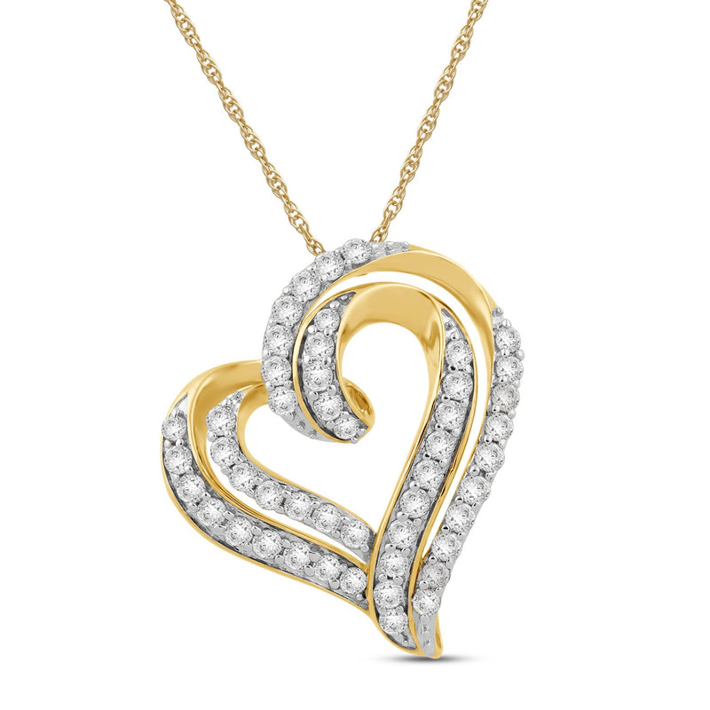 • 10K Yellow Gold with 1.0 Cttw Natural White Round Diamonds Heart Pendant Necklace