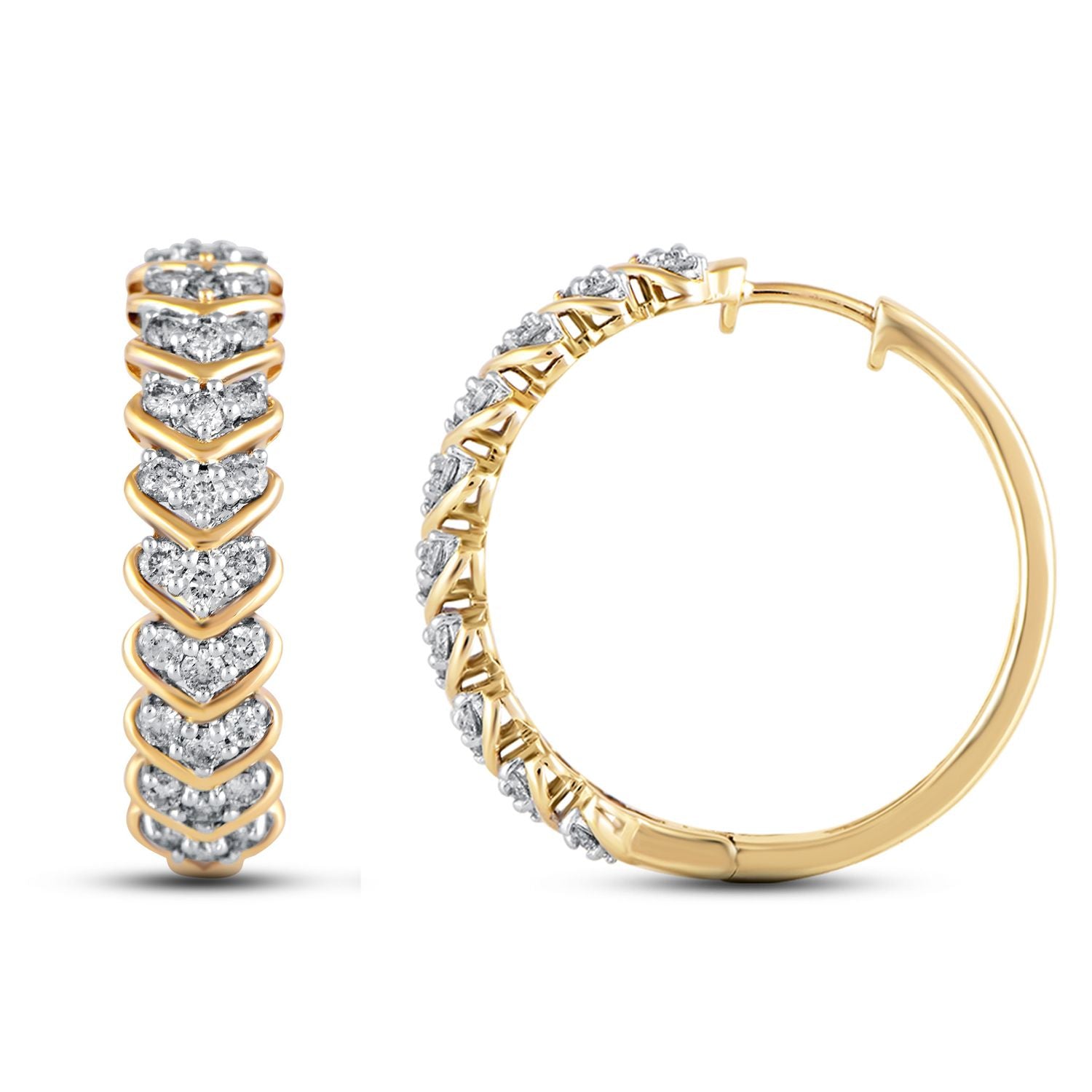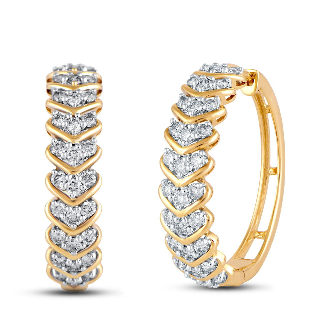 Jewelili 10K Yellow Gold With 1.00 CTTW Natural White Diamond Hoop Earrings