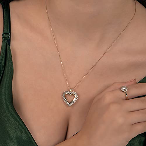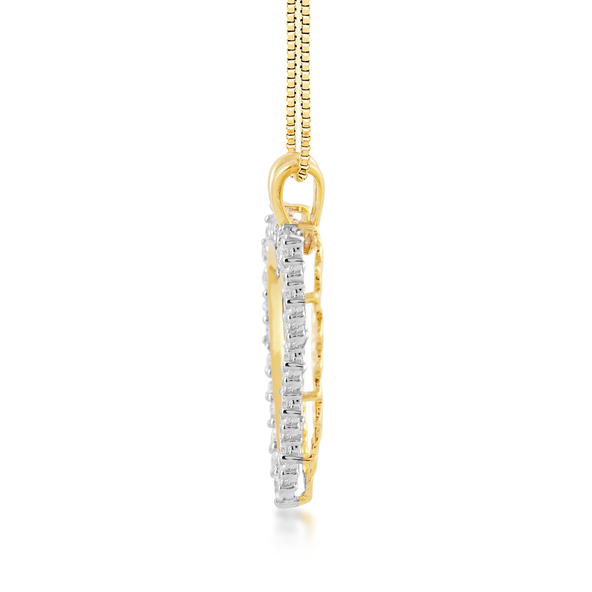 Jewelili 10K Yellow Gold With 1.00 CTTW Natural White Round Diamonds Heart Pendant Necklace