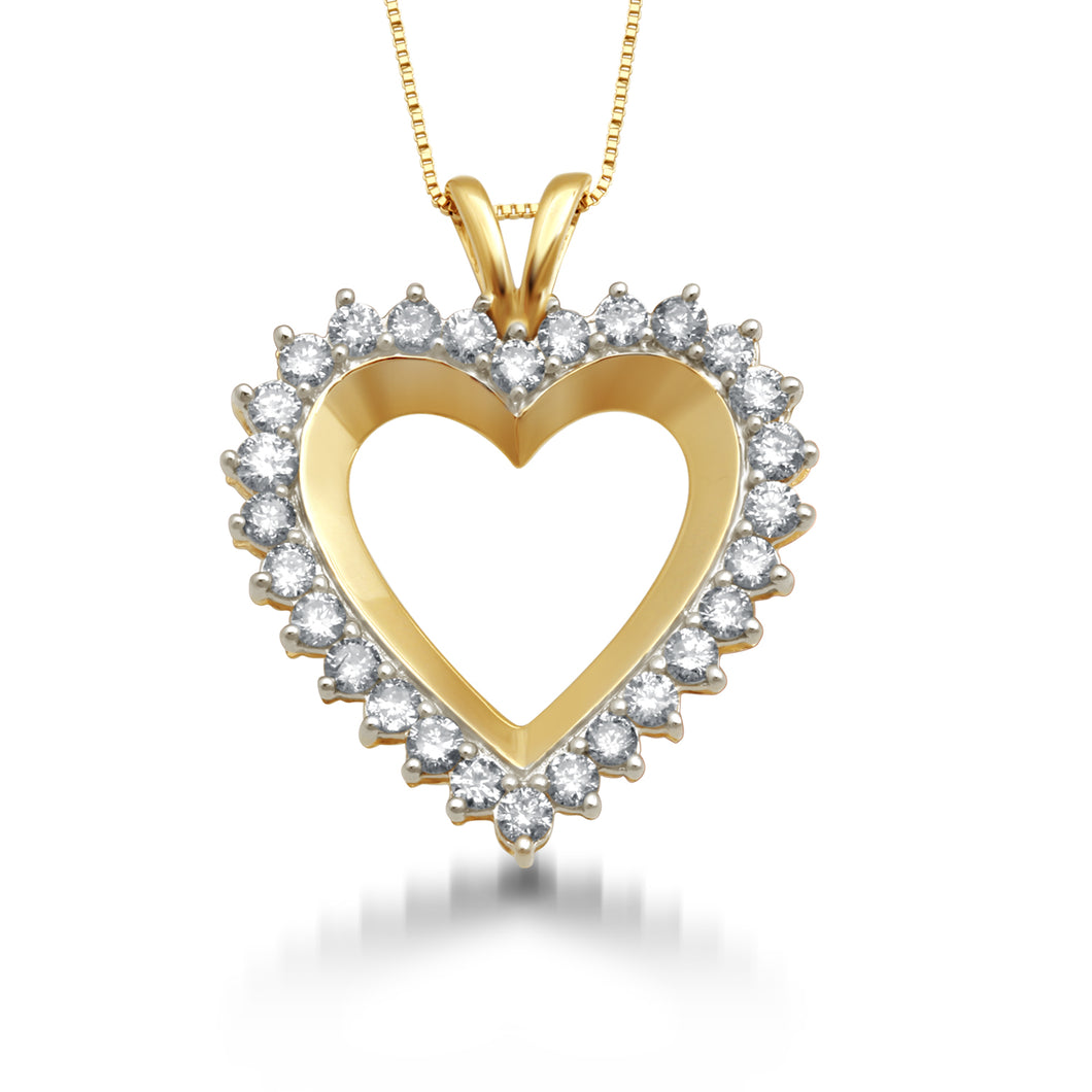 • 10K Yellow Gold With 1.00 Cttw Natural White Round Diamond Heart Pendant Necklace