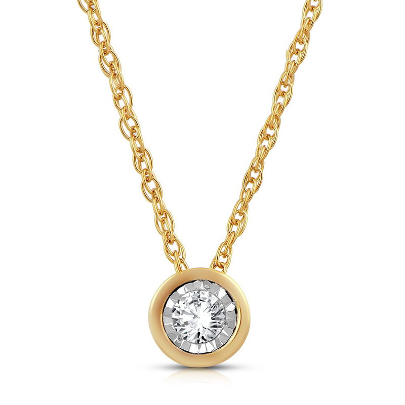 • 10K Yellow Gold With 1/10 Cttw Natural White Diamond Solitaire Pendant Necklace