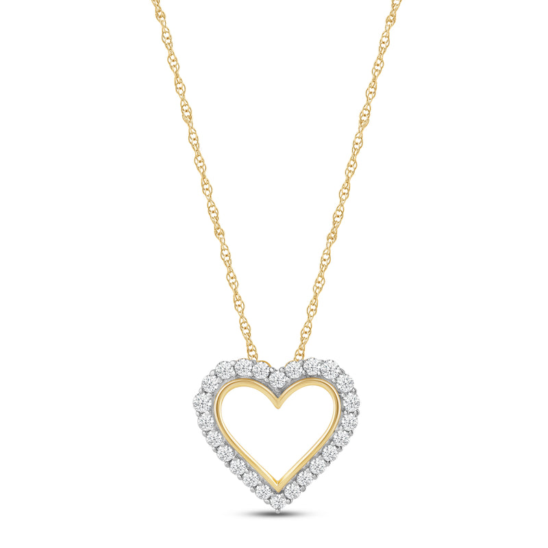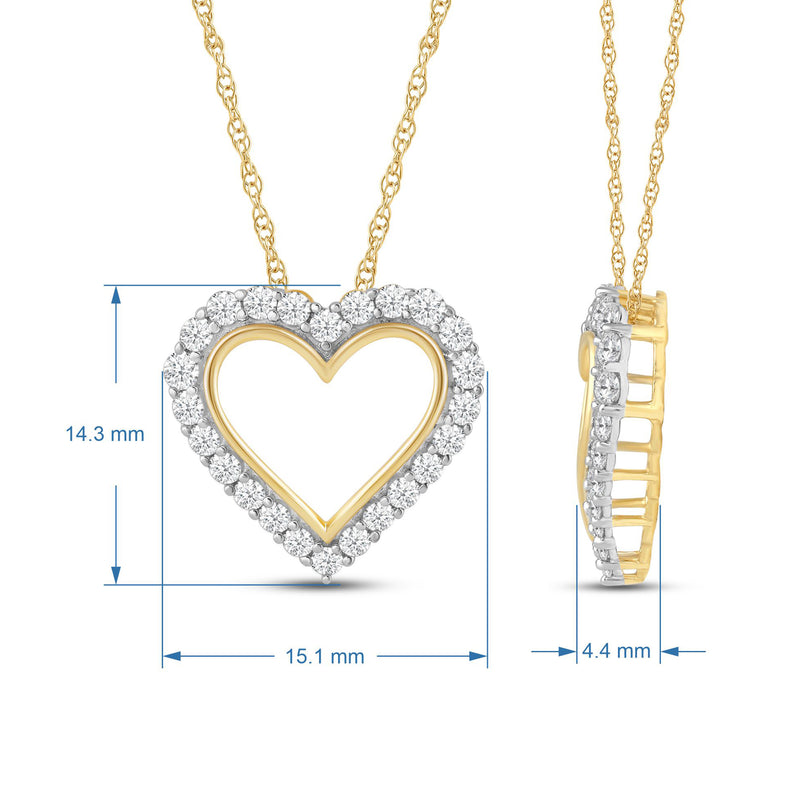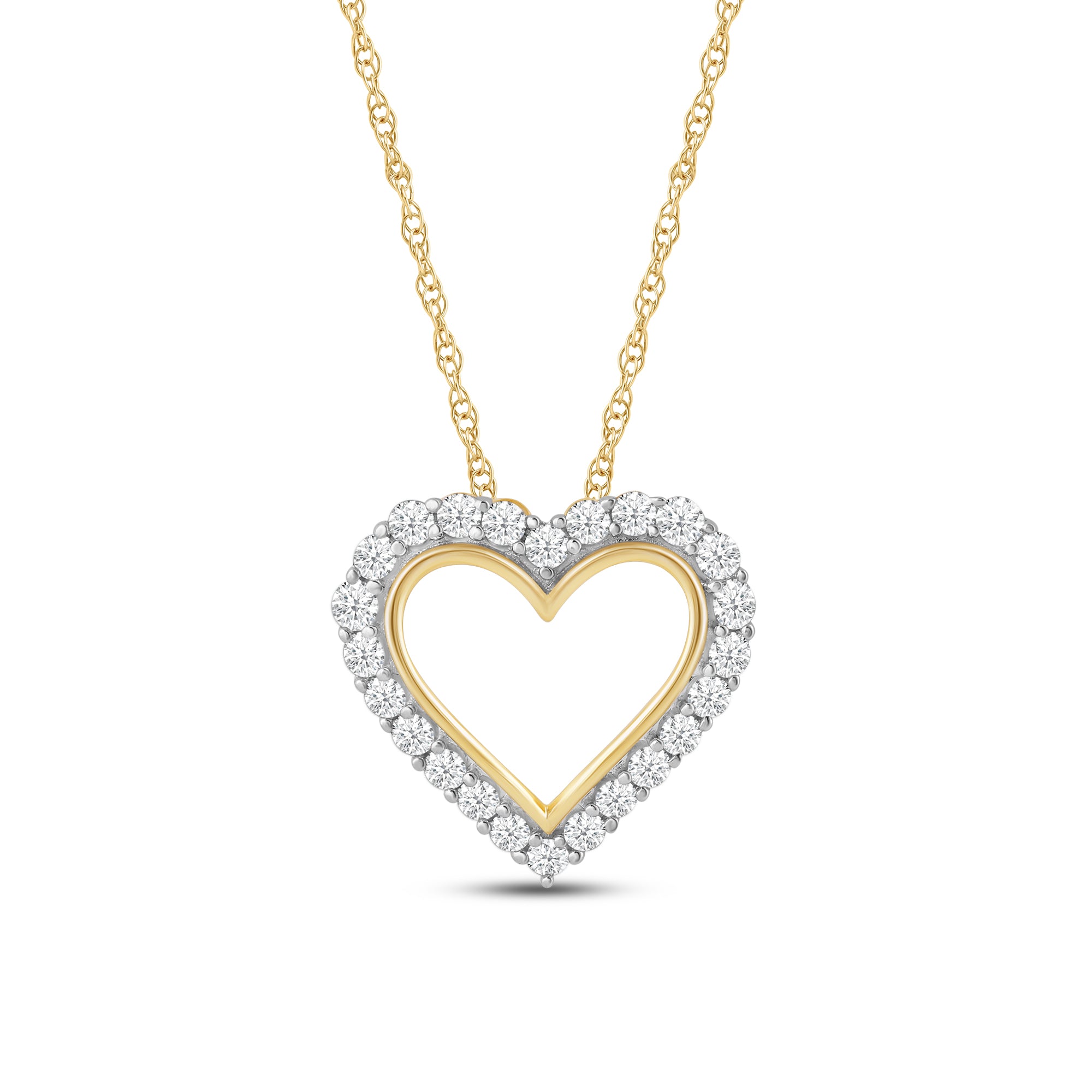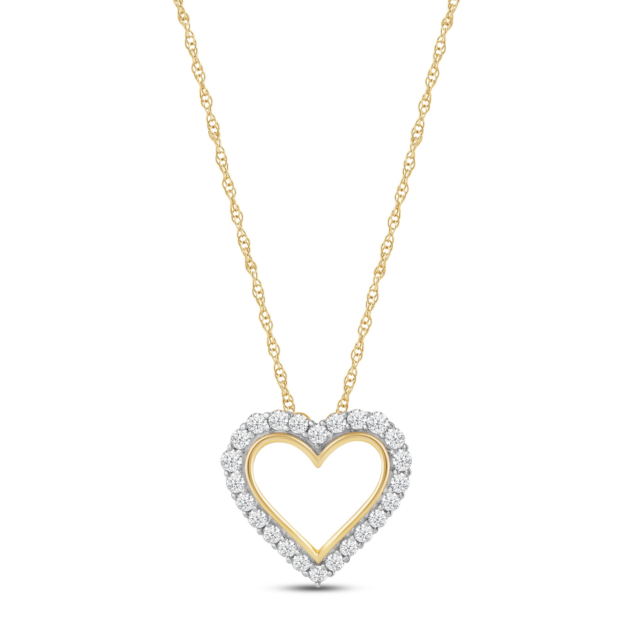 Jewelili 10K Yellow Gold with 1/2 CTTW Diamonds Heart Pendant Necklace