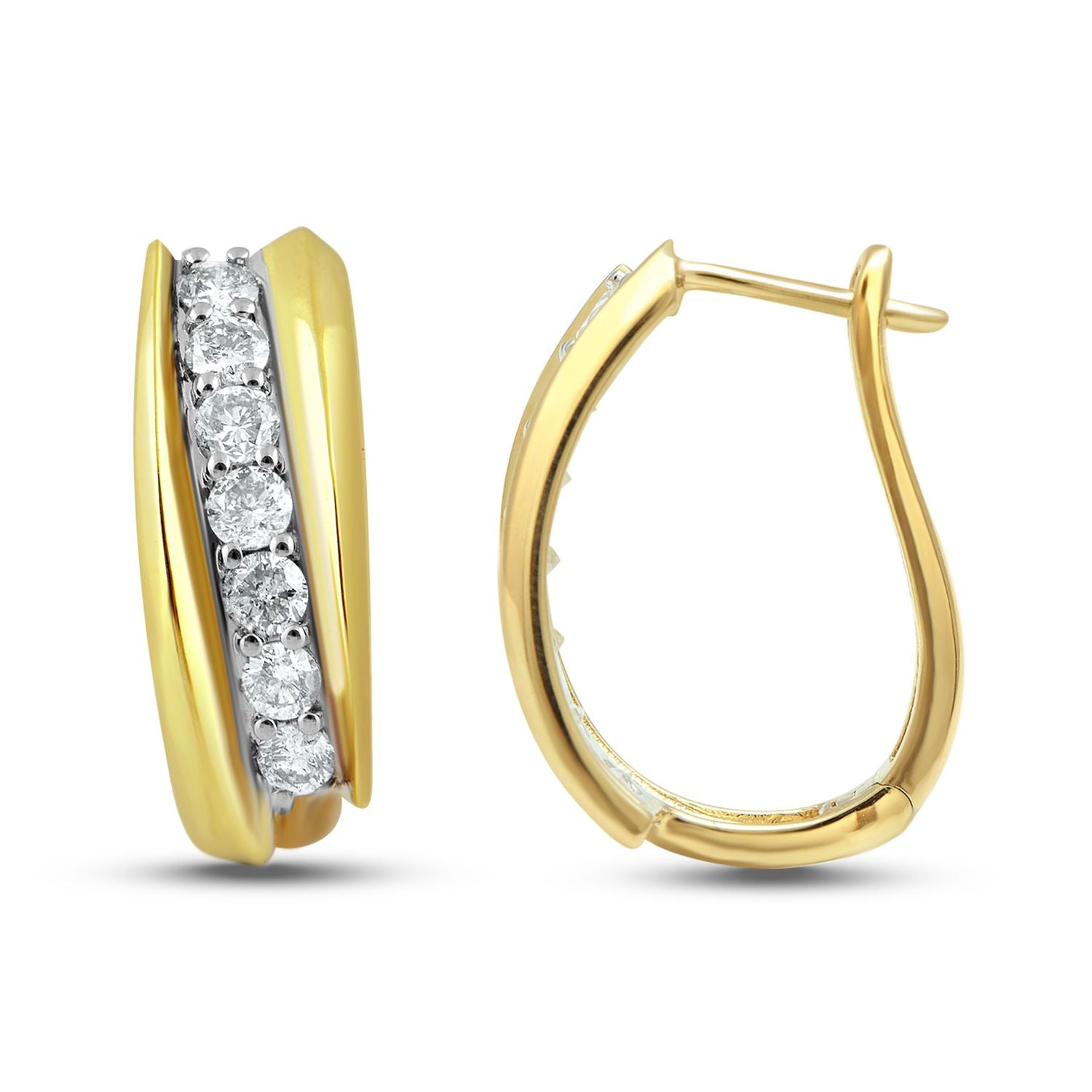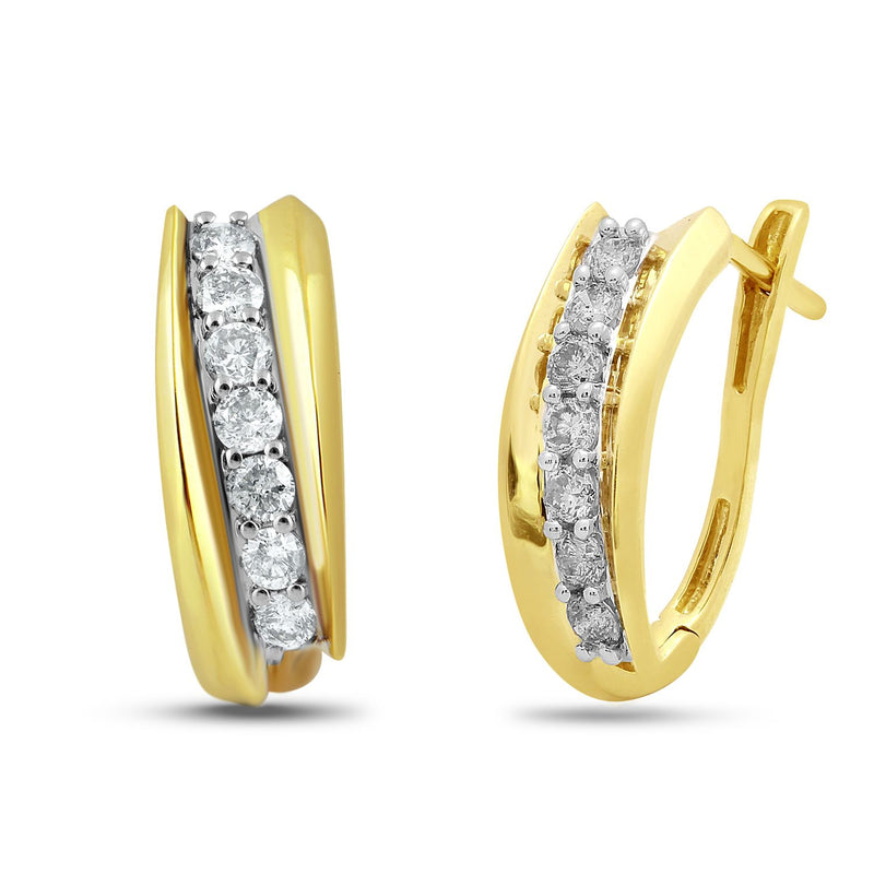 • 10K Yellow Gold With 1/2 Cttw Natural White Diamond Hoop Earrings