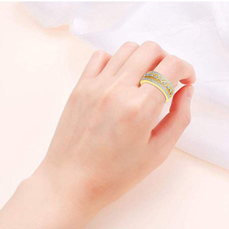 Jewelili 10K Yellow Gold with 1/2 CTTW Natural White Round Diamonds Anniversary Ring