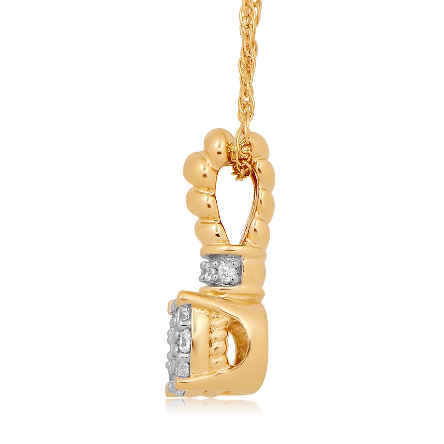 Jewelili 10K Yellow Gold With 1/4 CTTW Natural White Diamond Cluster Pendant Necklace