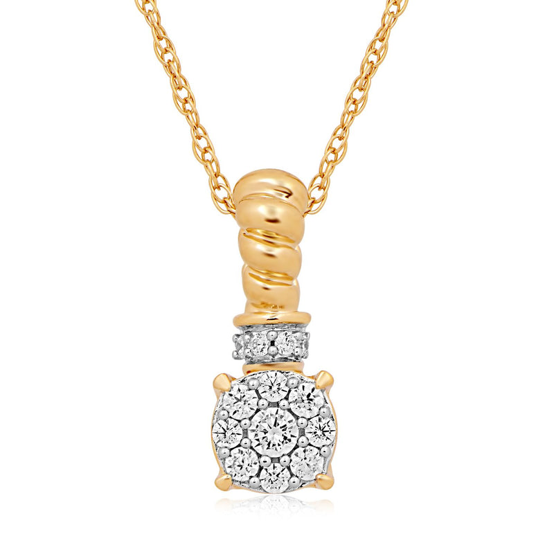 Details: 10K Yellow Gold With 1/4 Cttw Natural White Diamond Cluster Pendant Necklace