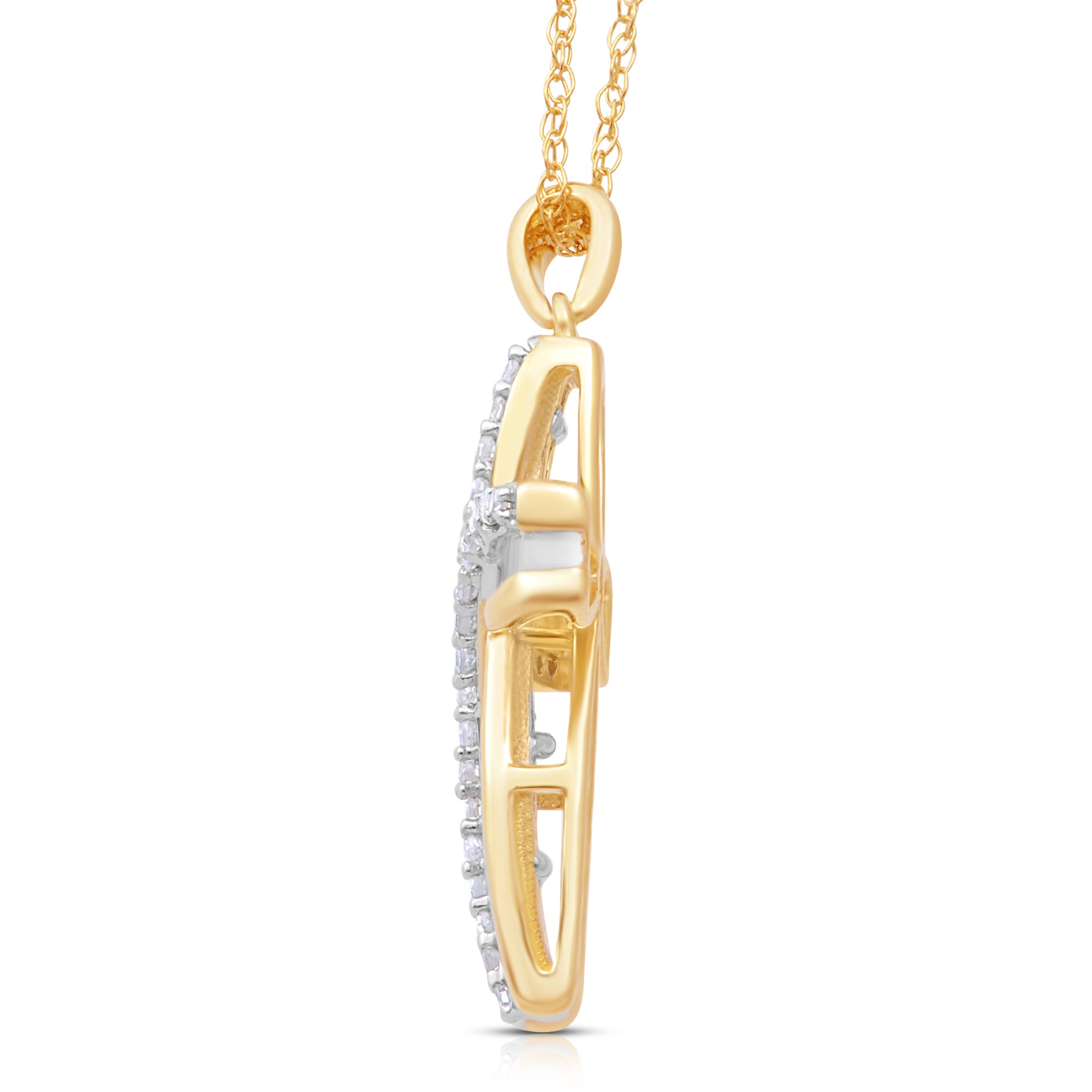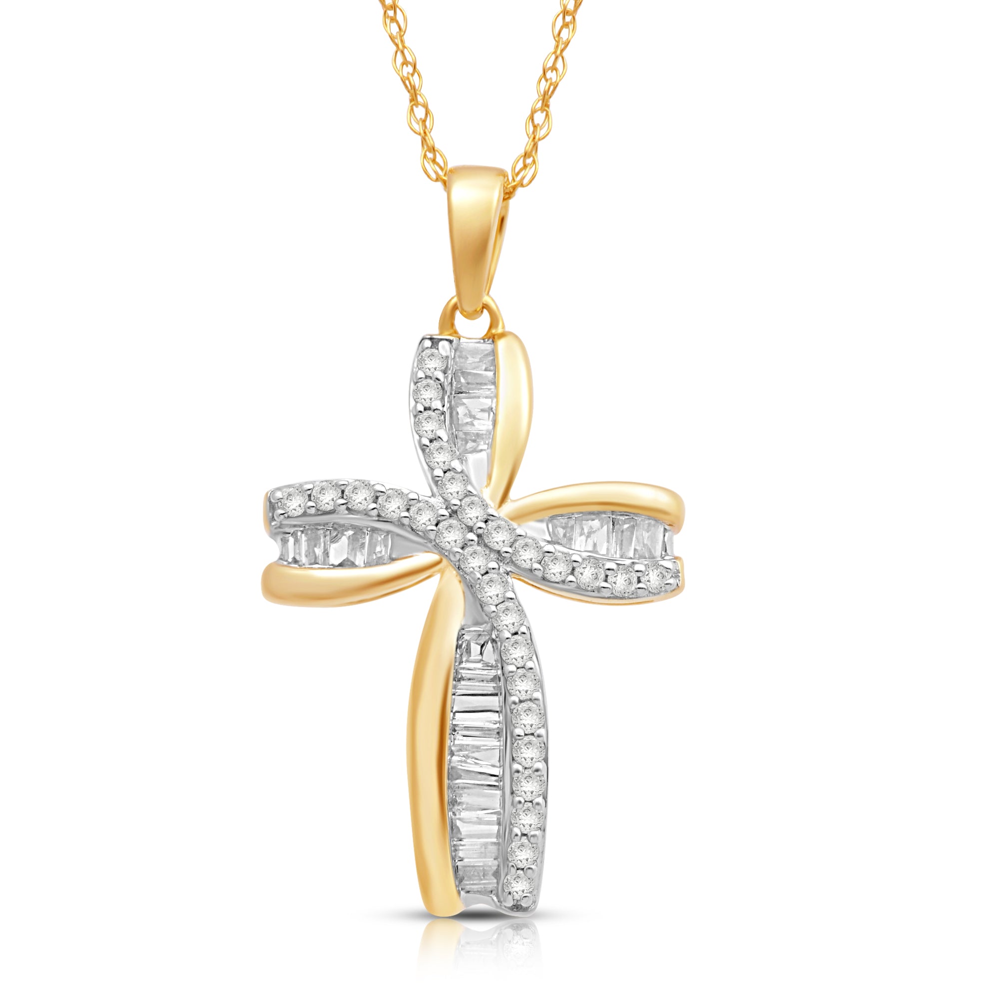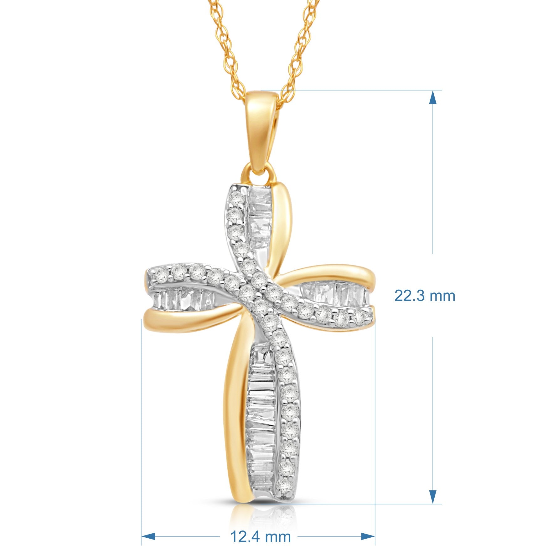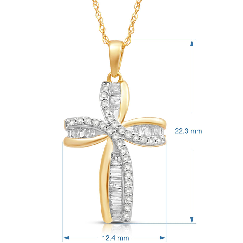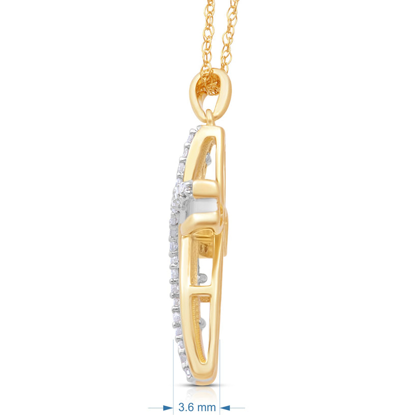 Jewelili 10K Yellow Gold With 1/4 CTTW Natural White Diamond Cross Pendant Necklace