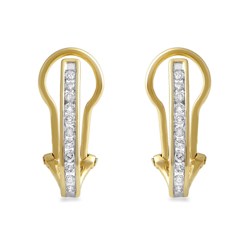 Jewelili 10K Yellow Gold With 1/4 CTTW Natural White Diamond Omega Back Earrings