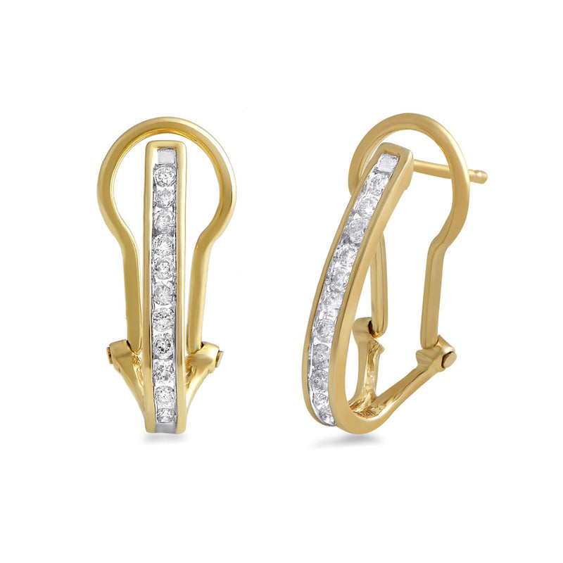 • 1Jewelili 10K Yellow Gold With 1/4 Cttw Natural White Diamond Omega Back Earrings