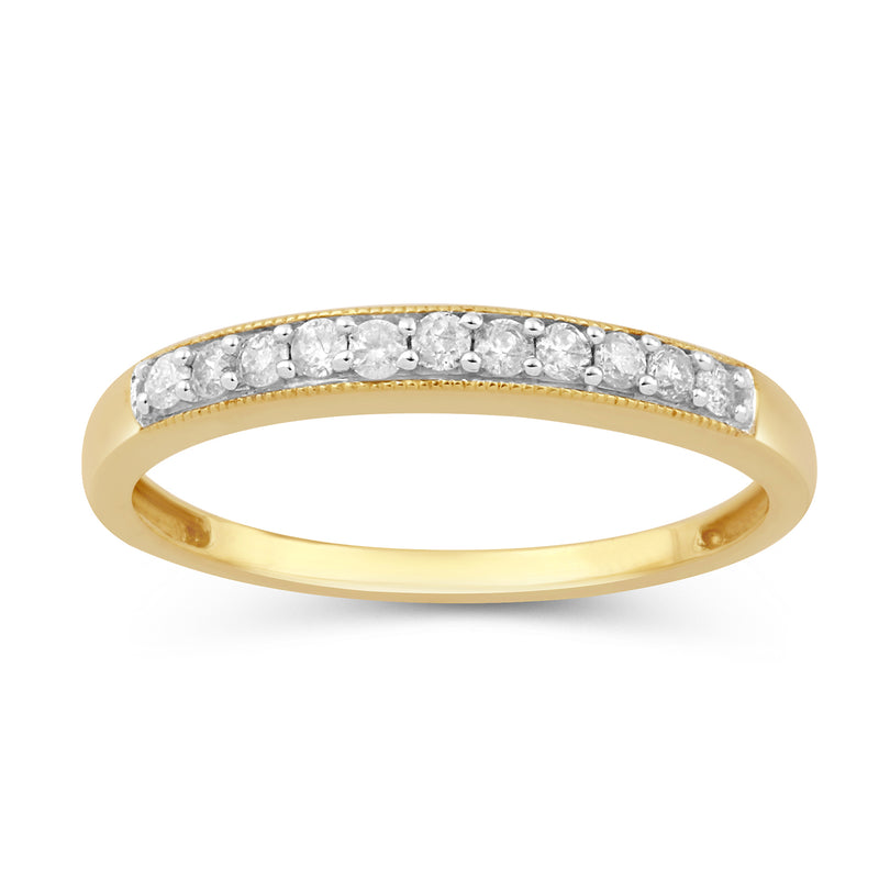 Jewelili 10K Yellow Gold With 1/6 CTTW Round Cut Diamonds Anniversary Band