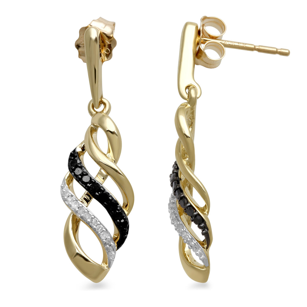 Jewelili 10K Yellow Gold With 1/6 CTTW Treated Black and White Natural Diamond Dangle Earrings