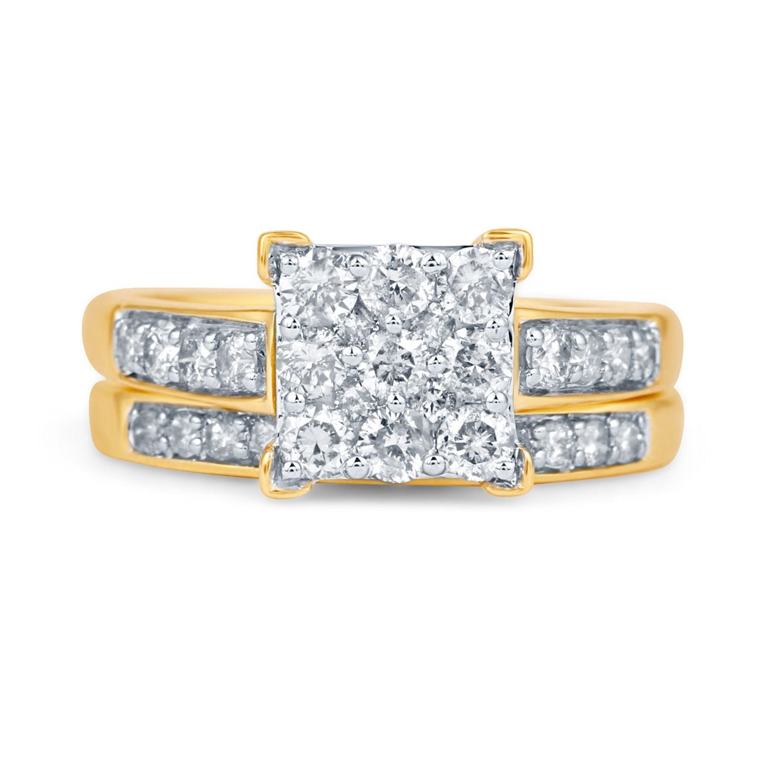 • 10K Yellow Gold With 1 Cttw Natural White Round Diamonds Bridal Set