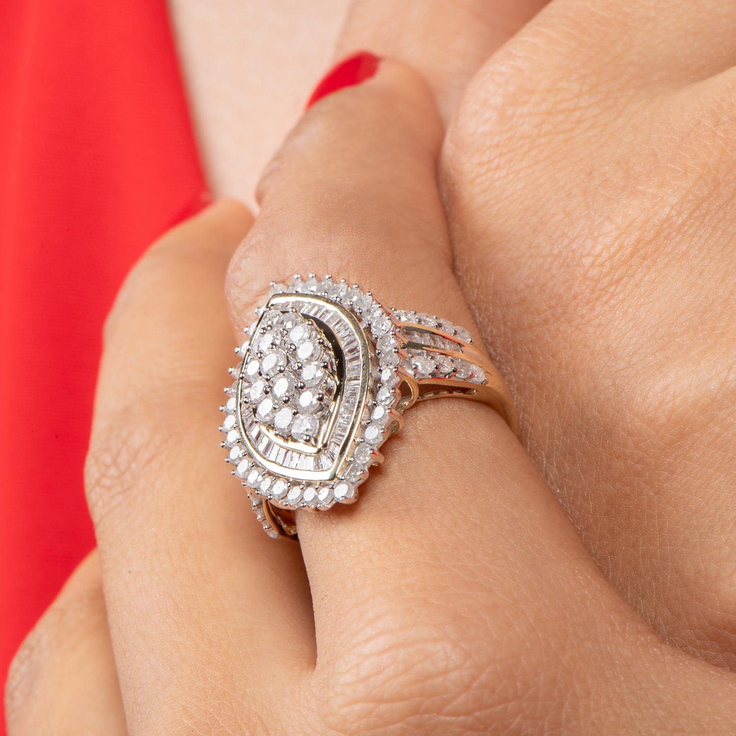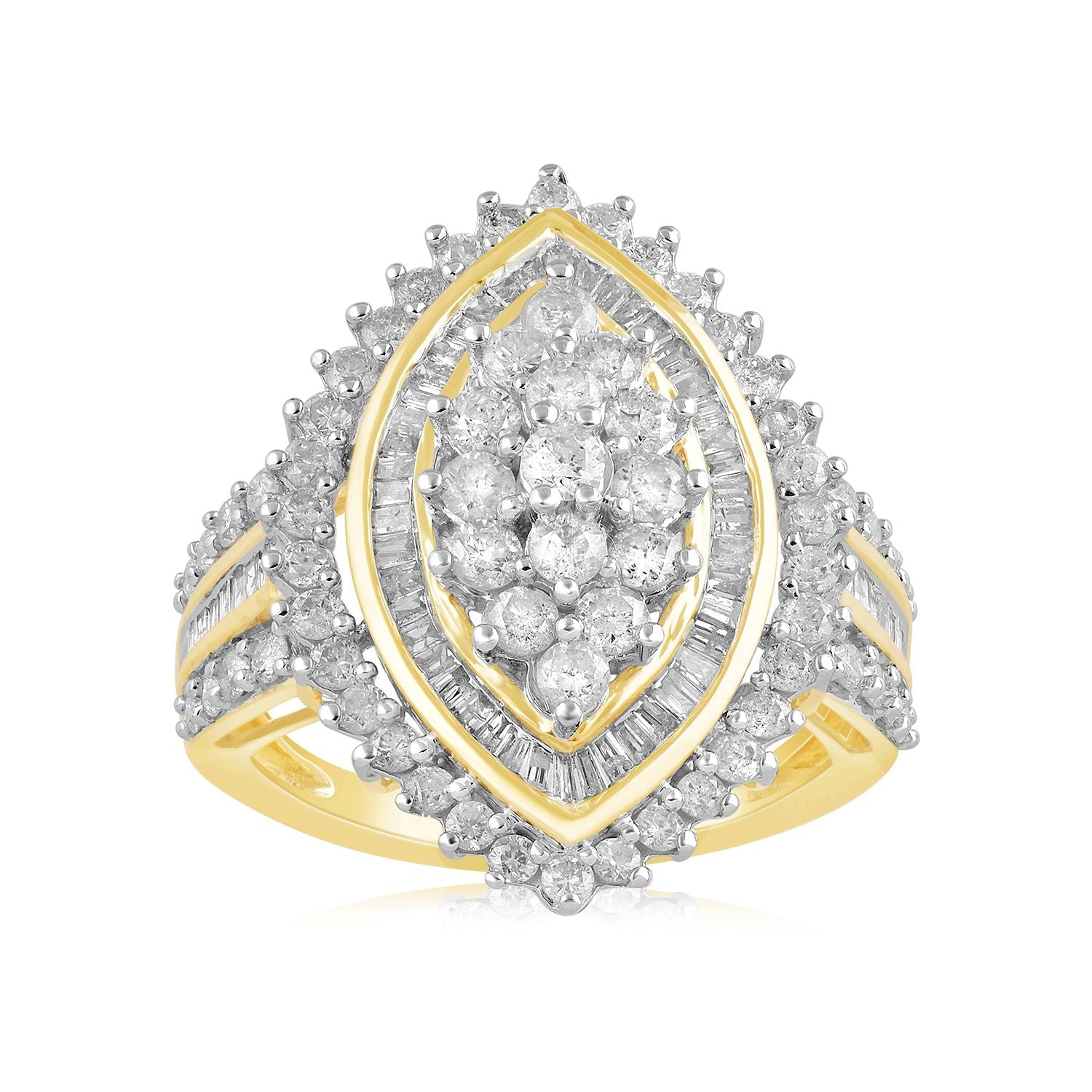 Jewelili 10K Yellow Gold With 2.0 CTTW Baguette Shape and Round Shape Diamonds Engagement Ring