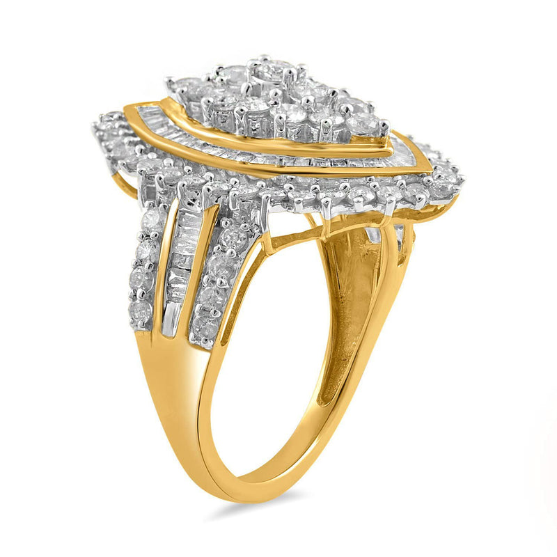 • 10K Yellow Gold With 2.0 Cttw Baguette Shape and Round Shape Diamond Engagement Ring