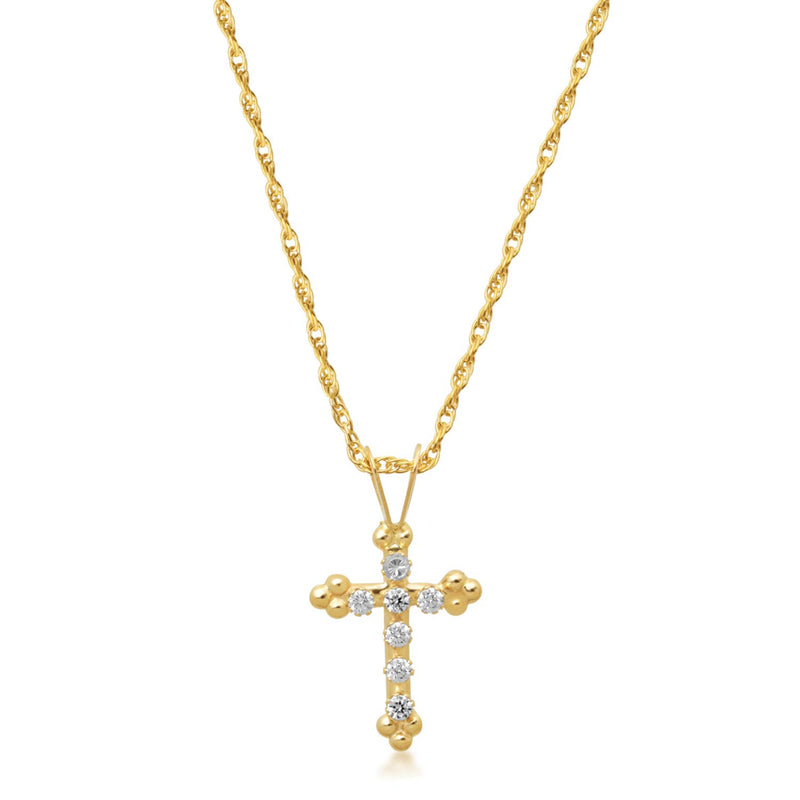 • 10K Yellow Gold with Cubic Zirconia Cross Pendant Necklace