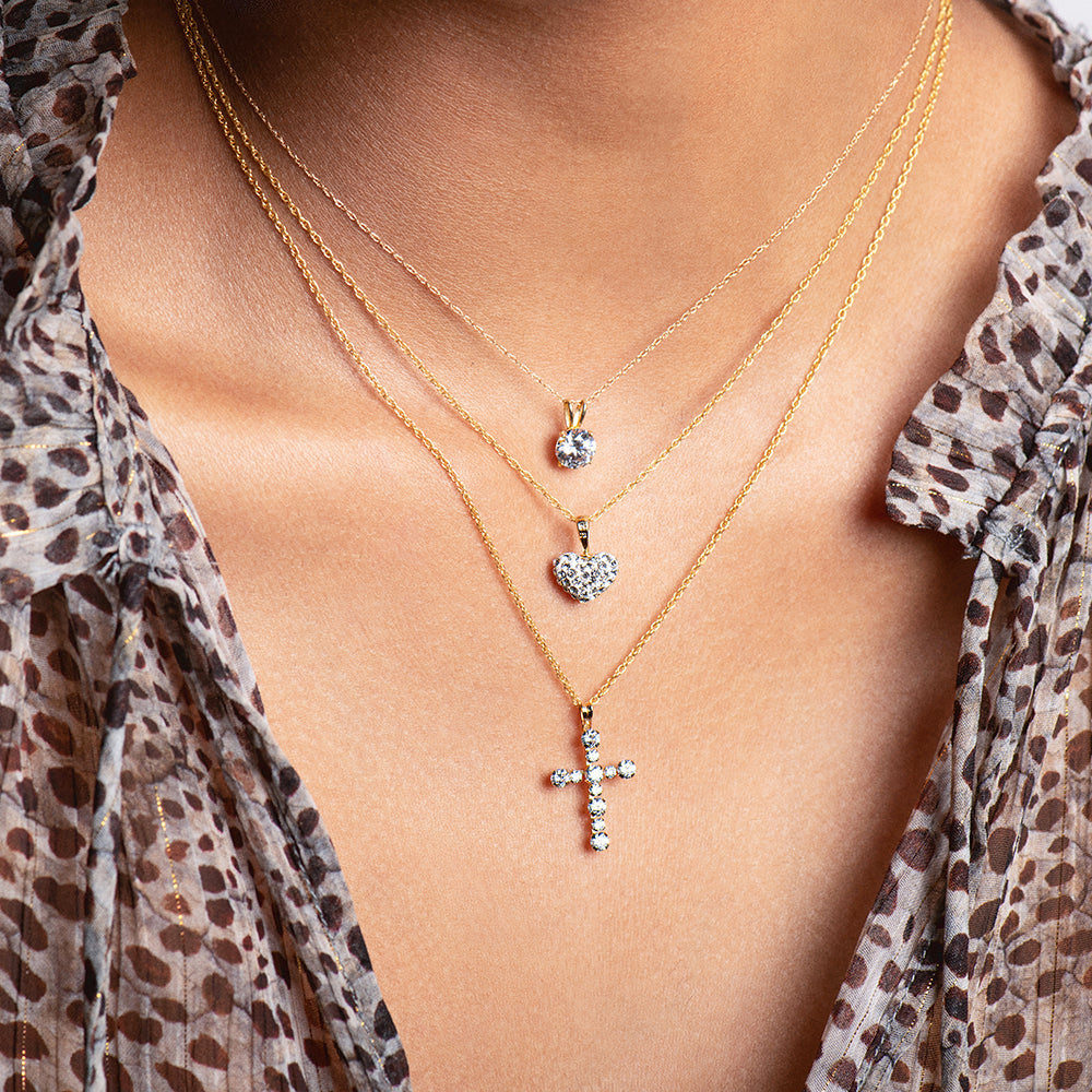 • 10K Yellow Gold With Cubic Zirconia Crystal Heart Pendant Necklace