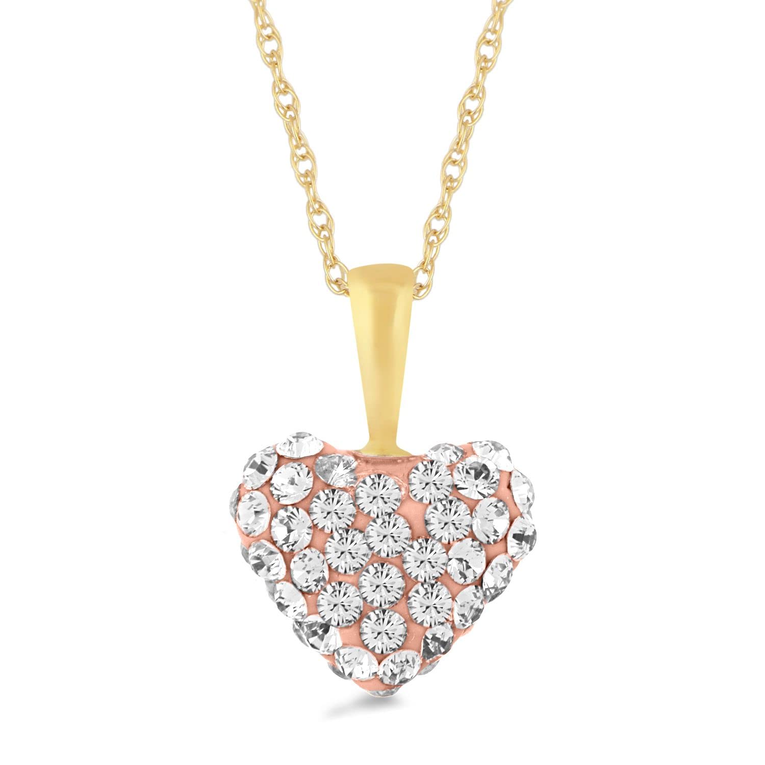 Jewelili 10K Yellow Gold With Cubic Zirconia Elements White Crystal Heart Pendant Necklace, 18" 14K Gold Filled Chain