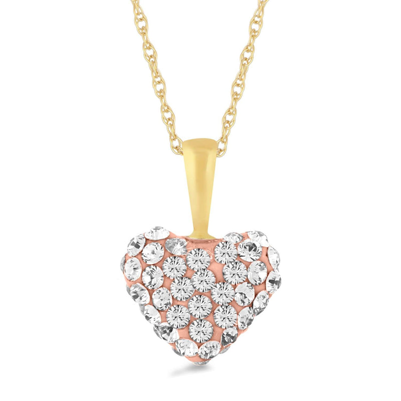 • Pendant necklace featuring 10k yellow gold puffed heart centerpiece filled with tinted Cubic Zirconia Elements