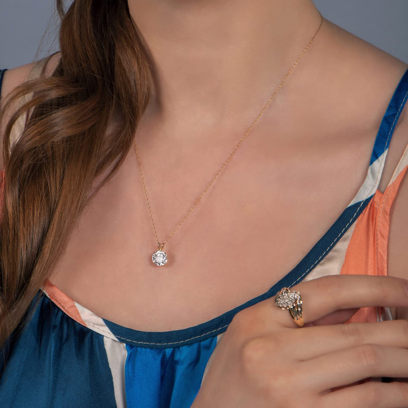 • 10K Yellow Gold with Cubic Zirconia Solitaire Pendant Necklace