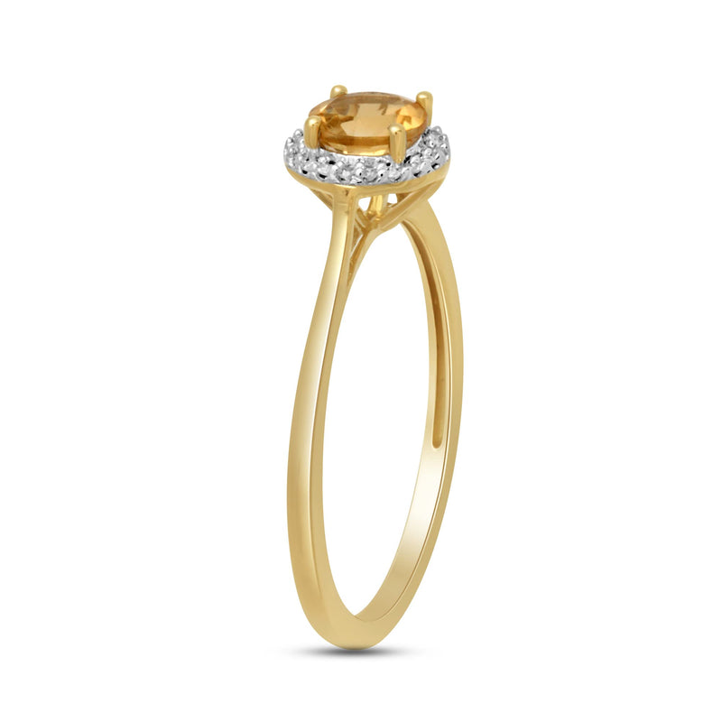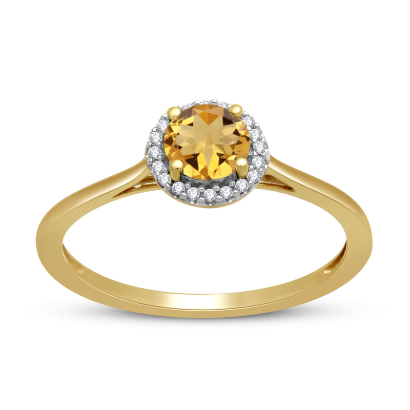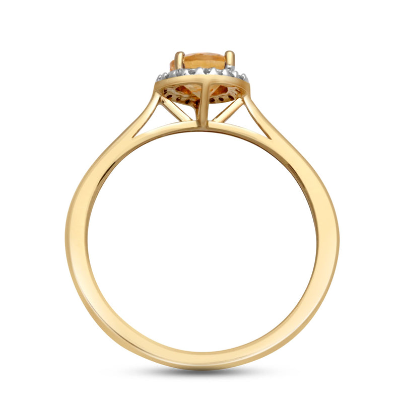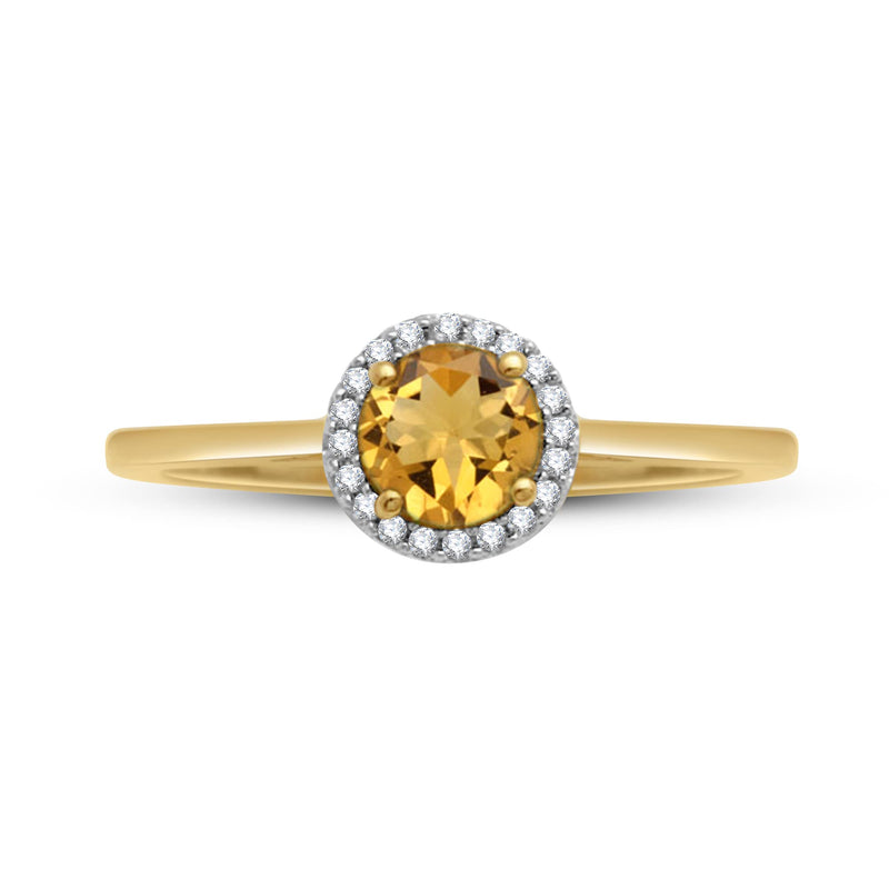 Jewelili 10K Yellow Gold With Genuine Citrine and Natural White Diamonds Halo Engagement Ring