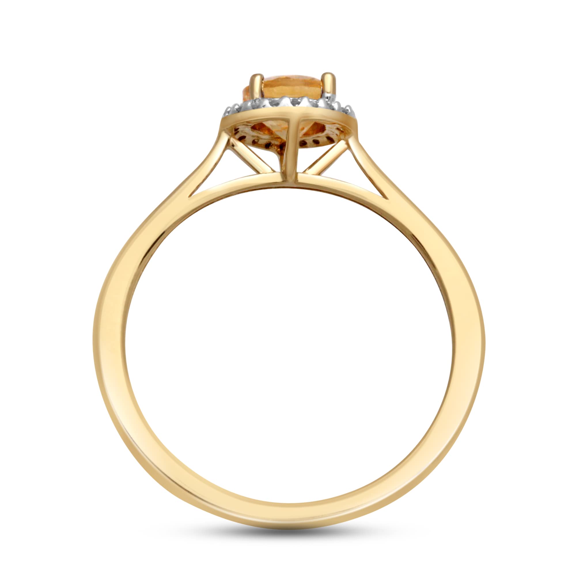 • 10K Yellow Gold With Genuine Citrine and Natural White Diamonds Halo Engagement Ring