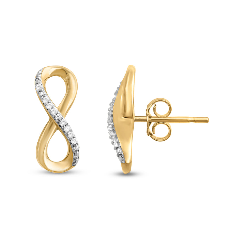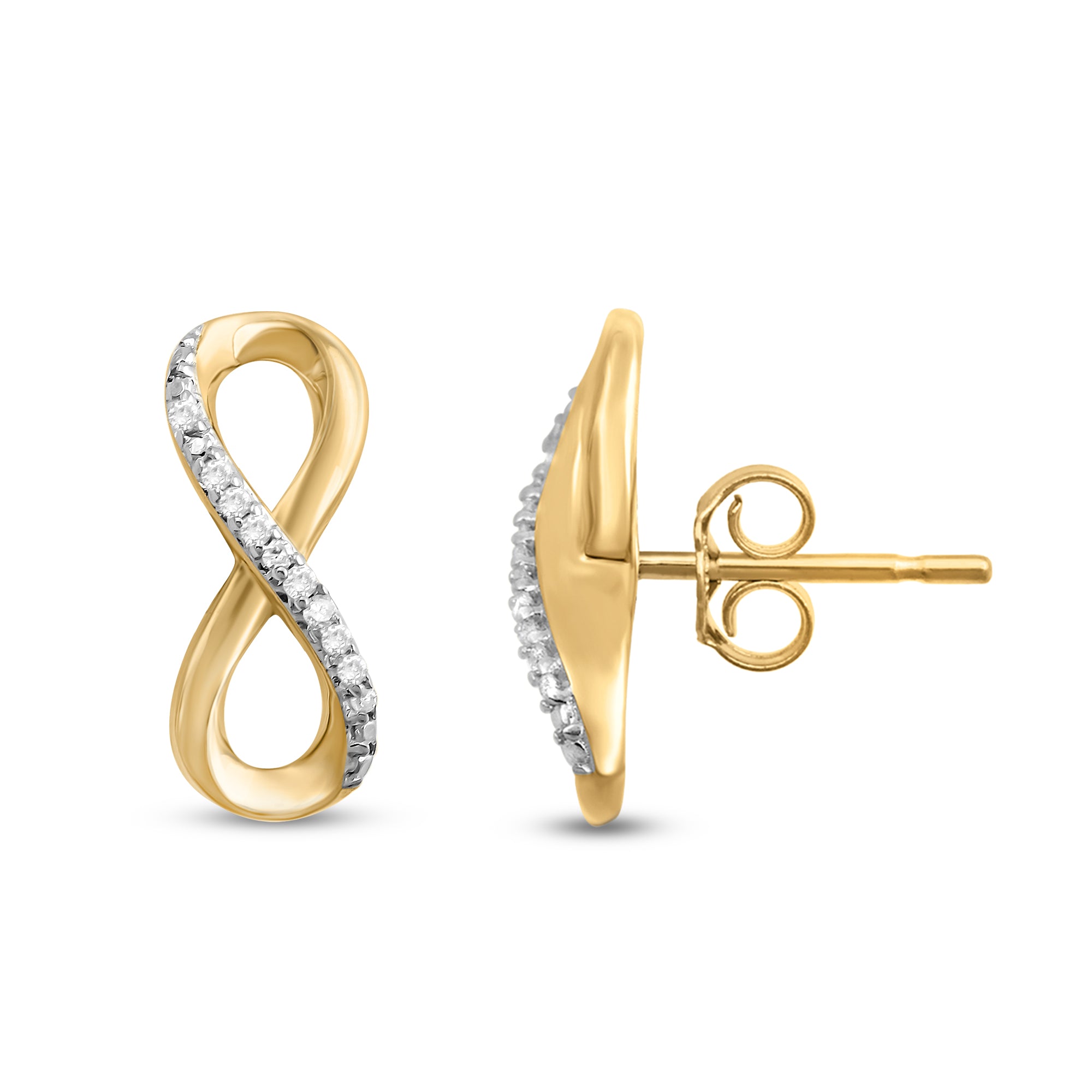 • Stud Earrings in 10K Yellow Gold Natural White Round Diamond Accent