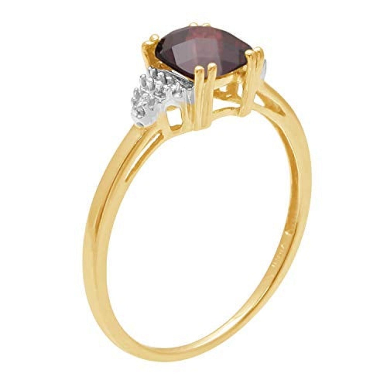 • 10K Yellow Gold With Red Garnet and Natural White Diamond Accent Halo Ring