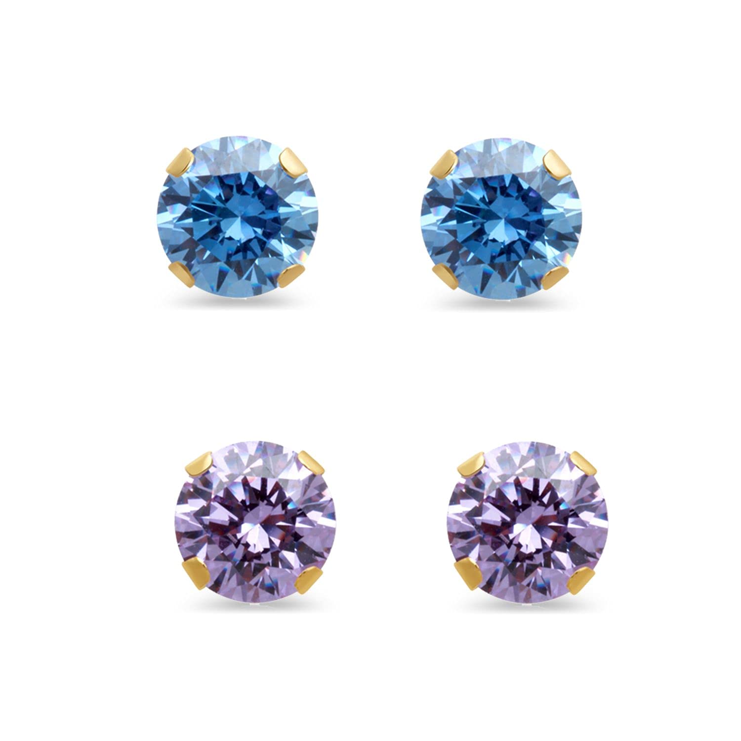 • 10K Yellow Gold Round Cut Lavender and Blue Cubic Zirconia Stud Earrings