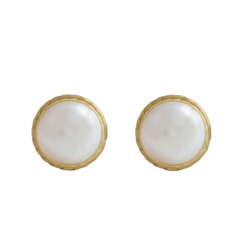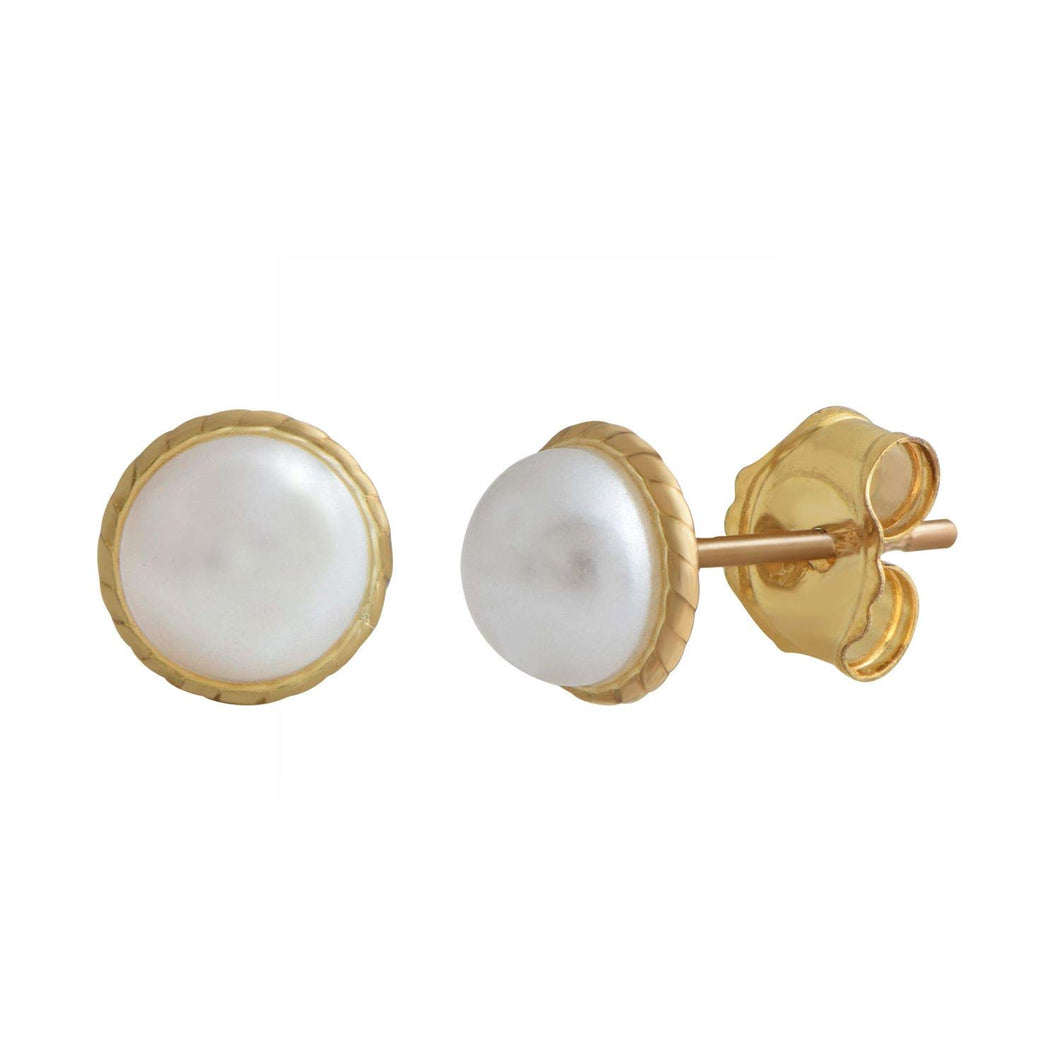 • 10K Yellow Gold With Round Glass Pearl Cubic Zirconia Stud Earrings