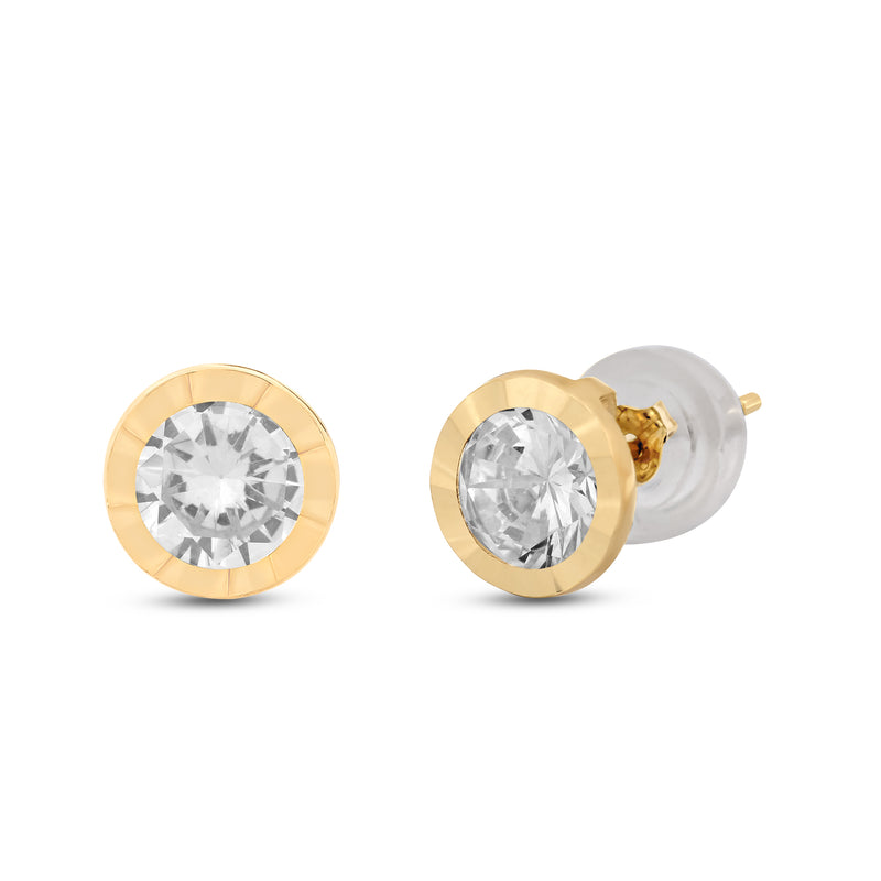 • 10K Yellow Gold with Round Shape Signity Cubic Zirconia Stud Earrings